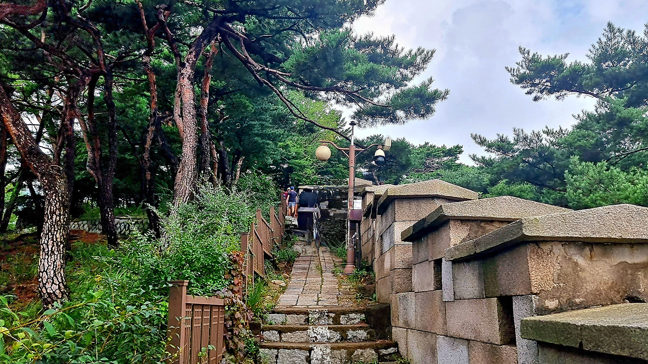 이렇게 가파르게 올라가는 이유는 여기서 성 안으로 들어가는 암문이나 통로가 없기 때문에 이 계단을 올라가서 성곽 위로 성내로 들어가야 하기 때문이다,