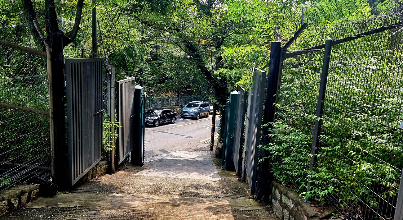 통문을 나가 삼청터널로 연결되는 도로를 건너 삼청공원으로 들어간다,
