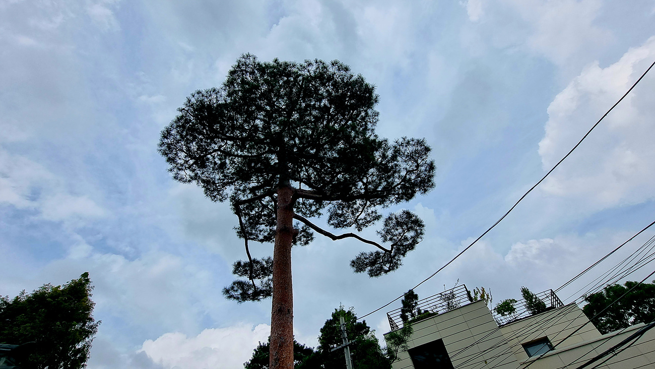조경수 지만 30~40나 되는 높이의 곧은 소나무도 있는 곳을 지나