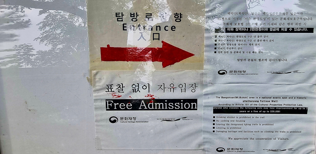 대통령실이 용산으로 옮겨갔어니 이 길은 더이상 성역구역이 아니라서 자유입장이다, 그리고 안내판은 문화재청 명의다,