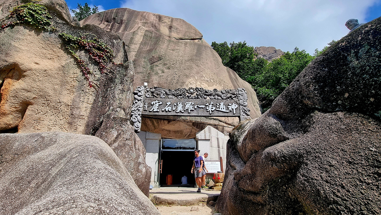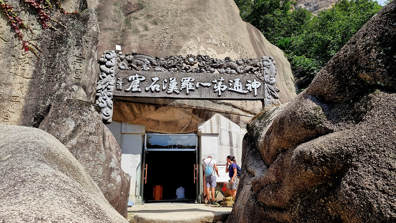 계조암 석굴로 올라가는 양쪽 바위 사이에 神通第一羅漢石窟(신통제일라한석굴)이라는 현판이 새겨져 있는데 현판 뒤로 보이는 석굴이 계조암석굴이다, 석굴을 잠시 들여다 보니 스님이 불공을 드리고 있다, 그래서 석굴 내부 사진은 없다,