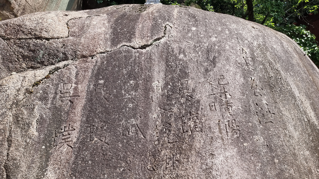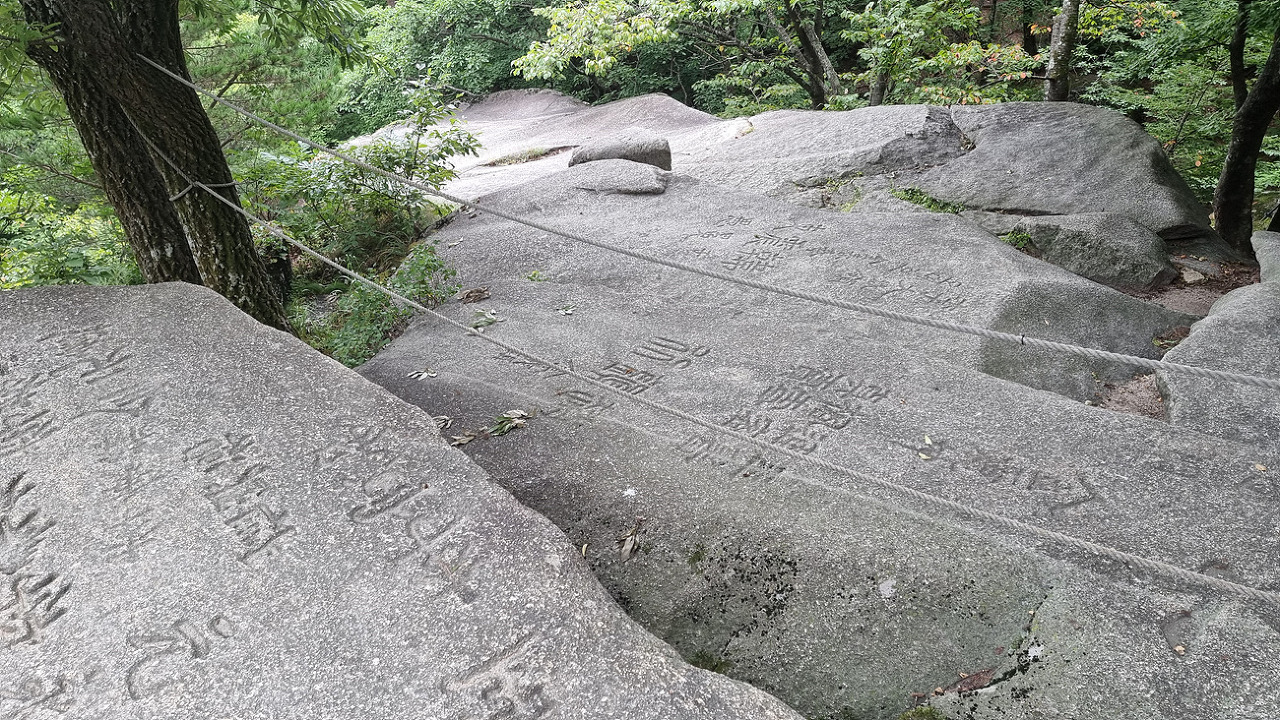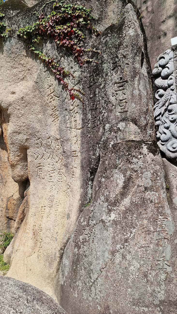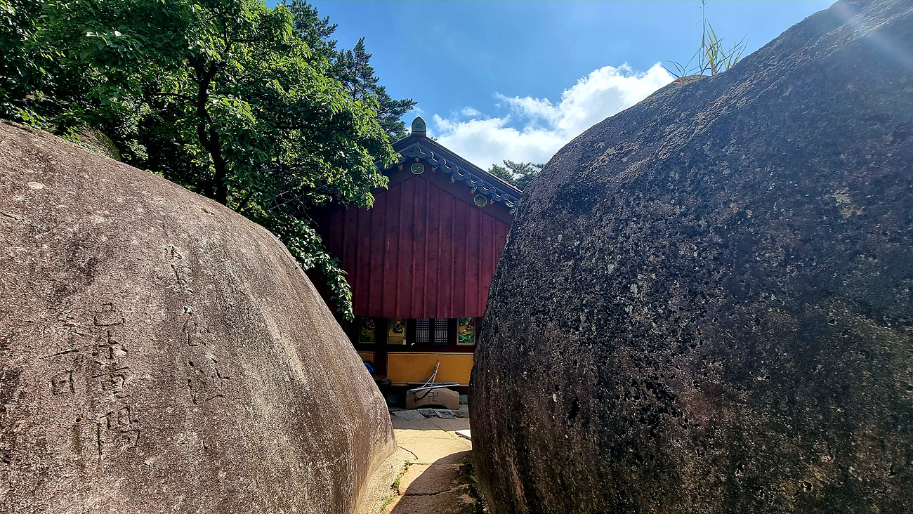 석굴 앞 문 역활을 하는 쌍용 바위가 양쪽에 있고, 쌍용바위에는 수 없이 많은 글자들이 새겨져 있다,
