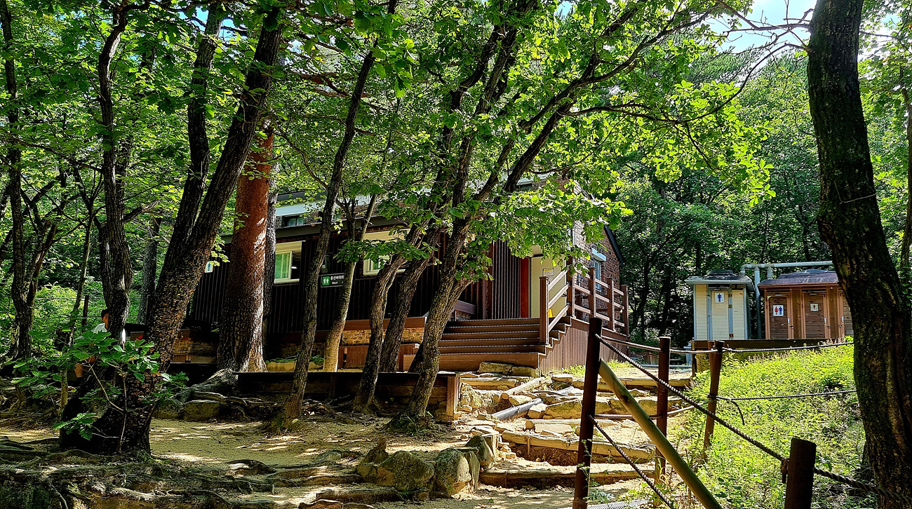 단아한 생김새의 집 한채와 그 뒤로는 이동식 간이 화장실도 있다, 울산바위 안내소인가? 했더니 여기는 새로 지은 화장실이다, 마침 공단 직원이 청소를 하고 있었는데 화장실 바닥 타일이 반짝 반짝 광이 나도록 딱고 있다, 이런 노고가 있기에 많은 사람들이 편히 사용할 수 있어니 그저 감사할 뿐이다,^^