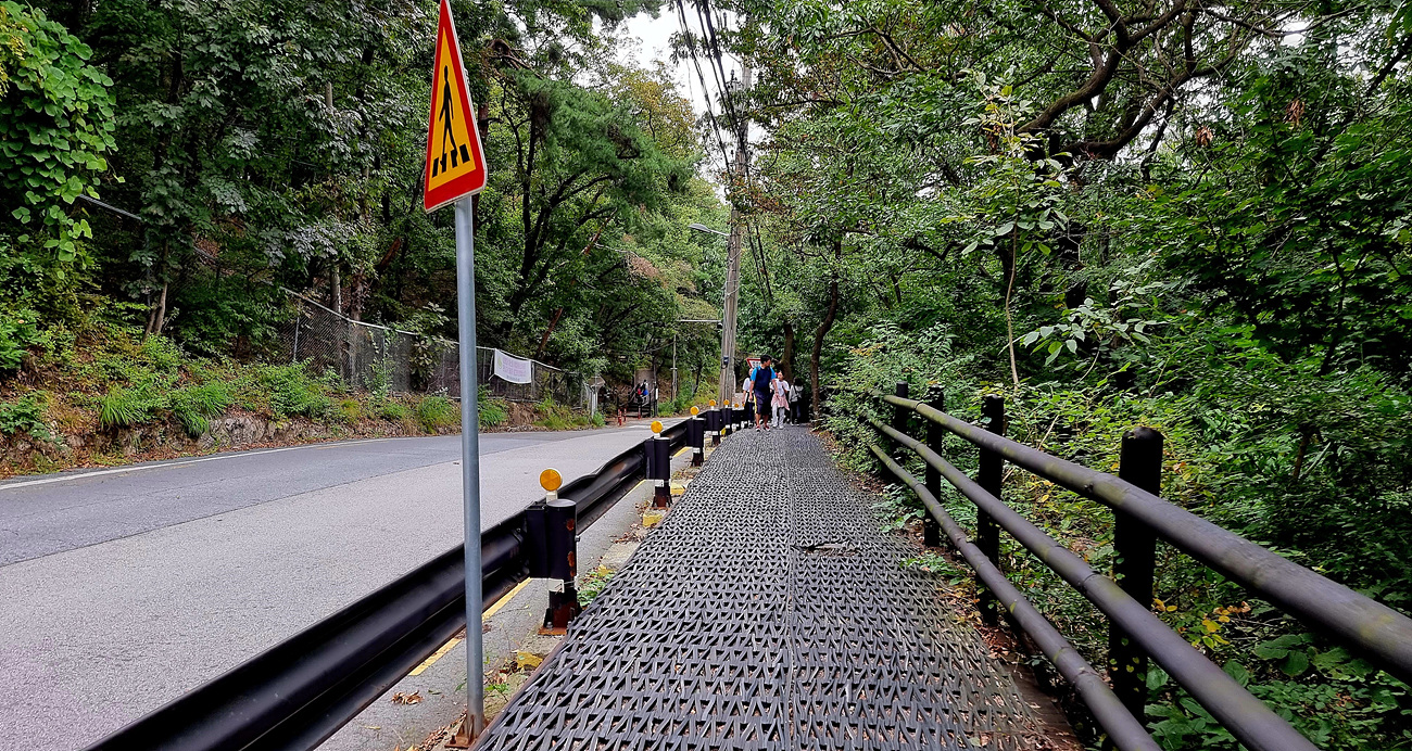 그러나 이런 길은 다행히 멀지는 않다, 오른쪽에 보이는 담장이 있는 안쪽은 소귀천매표소가 있었던 곳으로, 지금은 한옥카페 선운각이 있다,