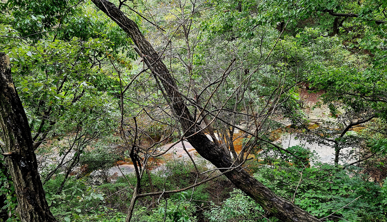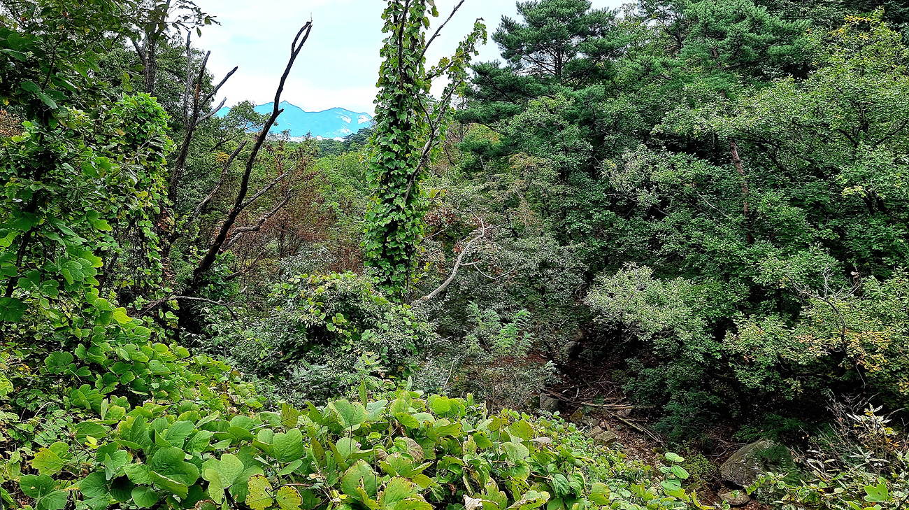 만경폭이 어디에 있는지? 찾아 보려고 했어나 계곡으로 내려가는 길도 없고 우거진 숲이 시야를 가로막아 계곡을 내려다 볼 수도 없다, 그래서 끝내 찾지 못했다, 내려다 보이는 계곡은 이 정도 인데 여기가 만경폭은 아닌것 같다,