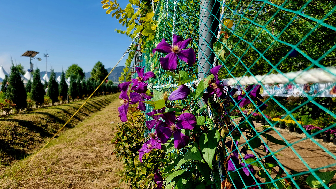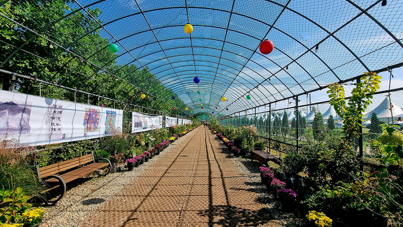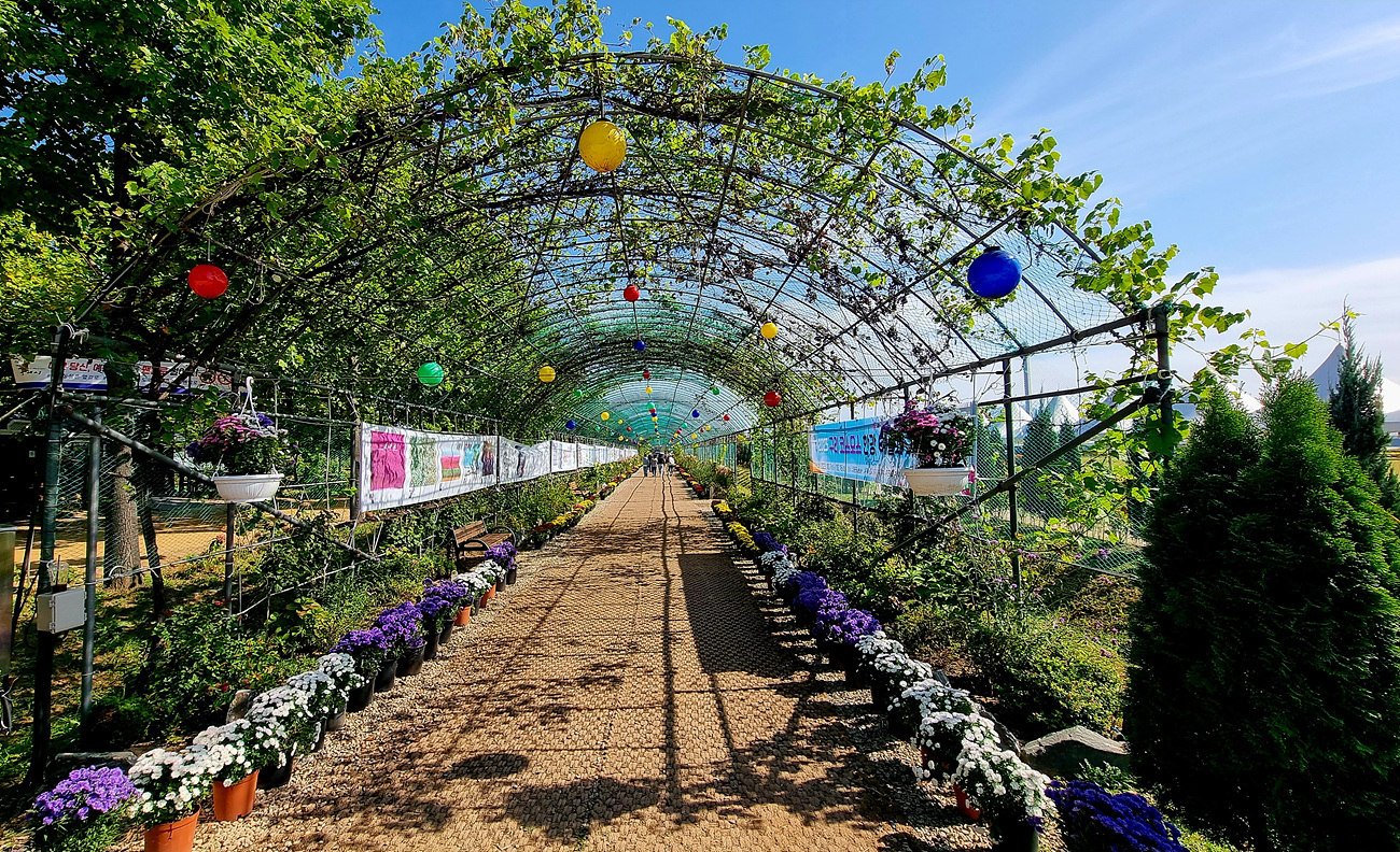 터널 양쪽으로 국화 화분도 줄을 지어 있고 꽃들도 피여 있어며