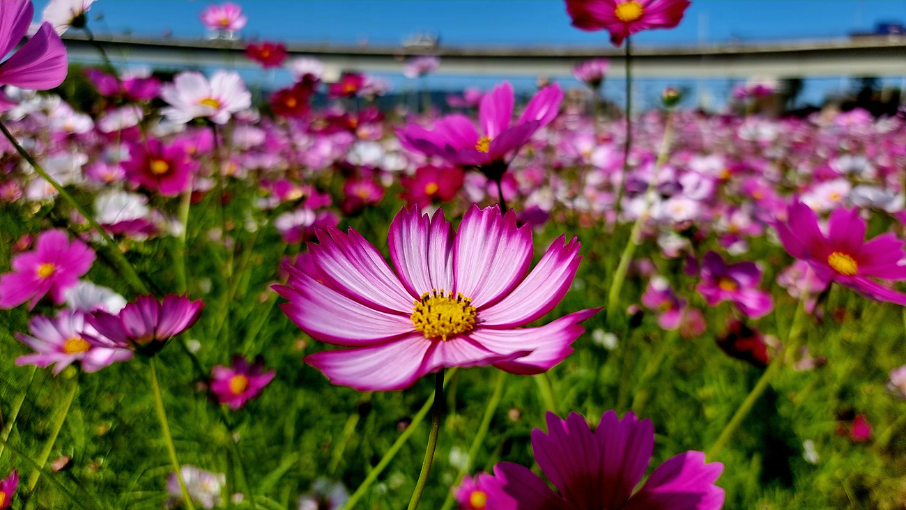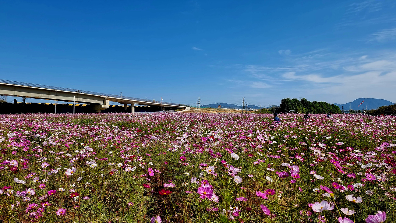 형형 색색의 대 단지 코스모스 밭이 끝도없이 펼쳐진다,