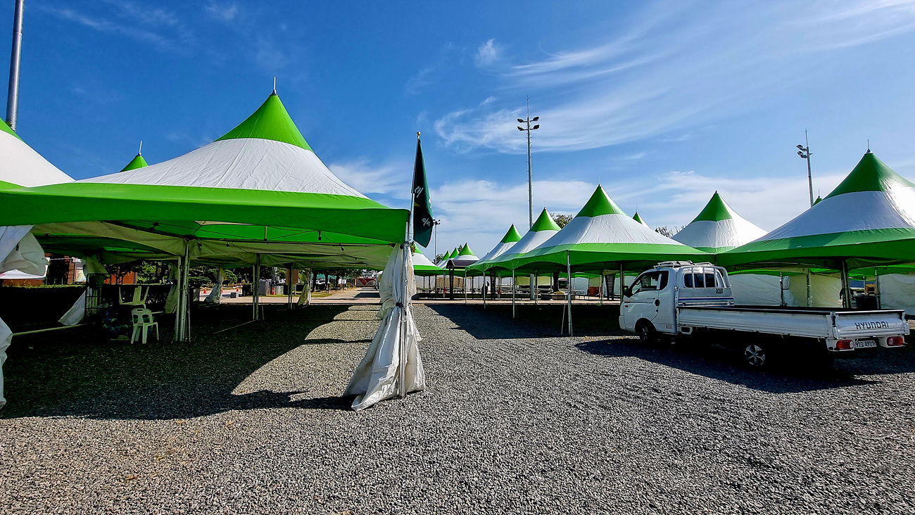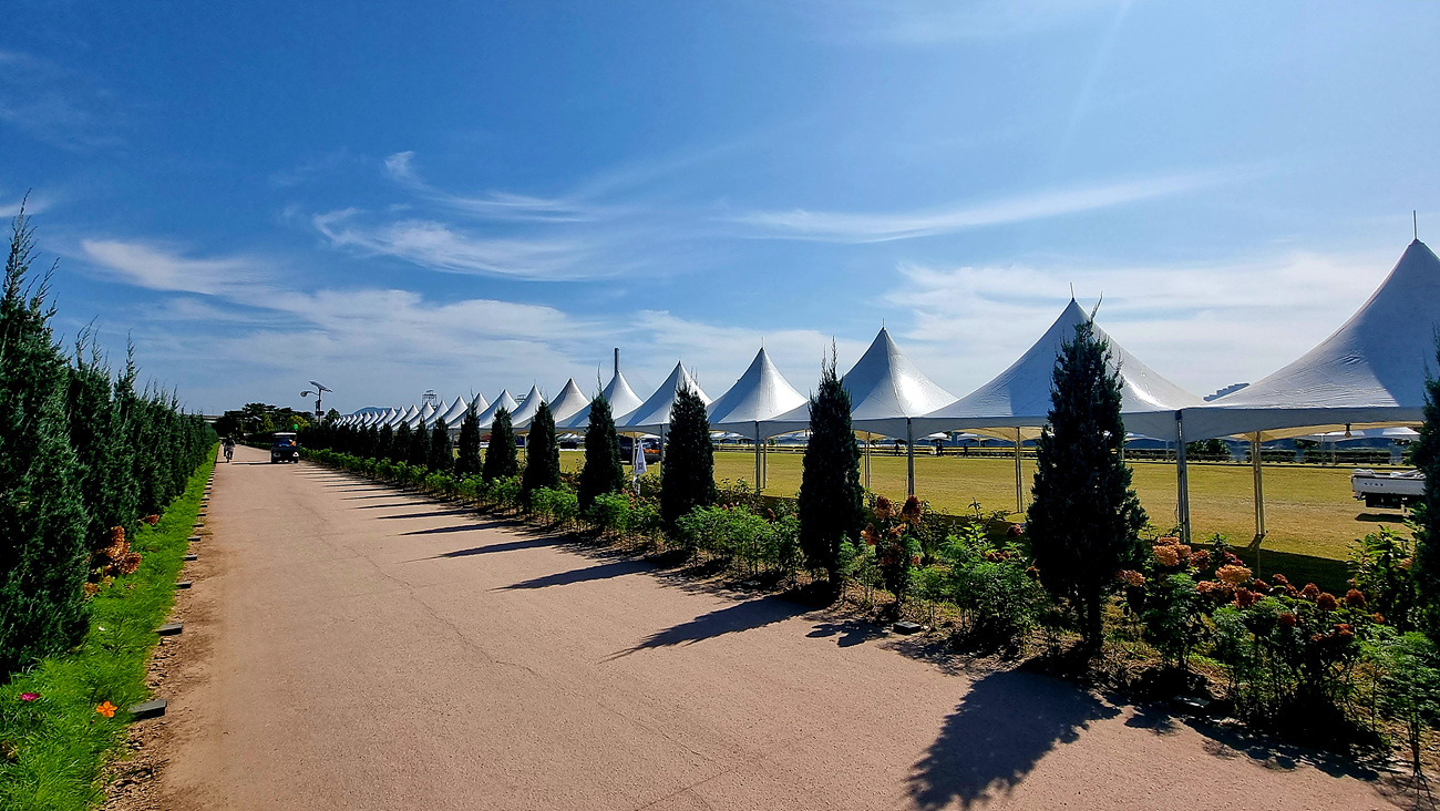 한강예술제 전야제가 열리는 이틀전 수요일(11일) 주차장에서 부터 먹거리 영업장소 천막들이 세워지는 등 축제준비를 하고 있었다, 이곳으로 찾아가는 길은 강변북로 구리 암사대교를 지나 구리시민한강공원 주차장으로 가면된다,