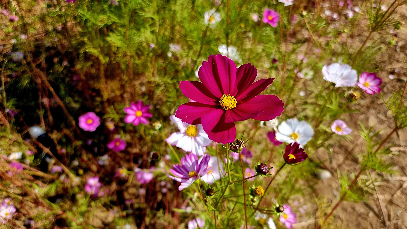 이렇게 노란색의 꽃도 있는데 이 꽃은 국화과가 아니라 노란 코스모스다, 대한 코스모스 단지 구경은 여기까지다,