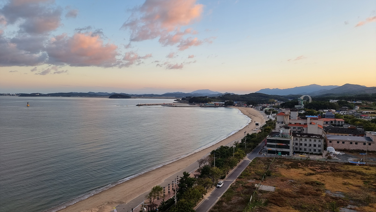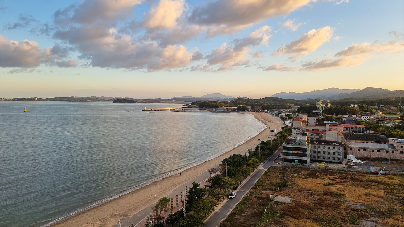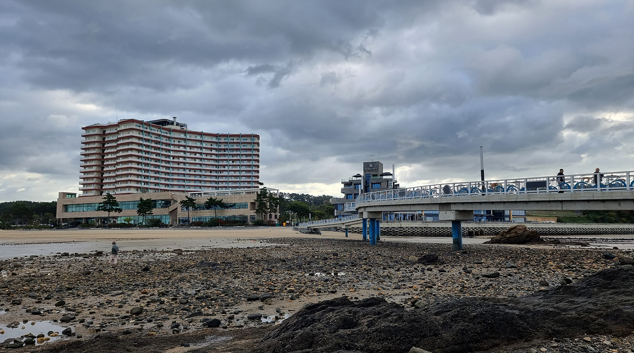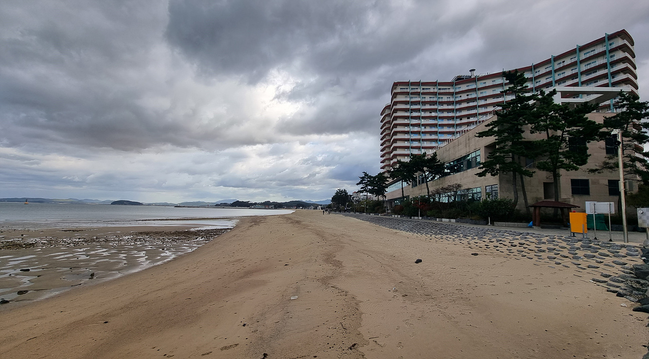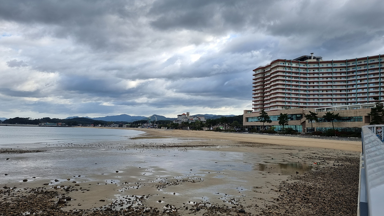 무창포갯벌의 남쪽 끝, 홀로 우뚝 선 용평리조트 비체 팰리스는