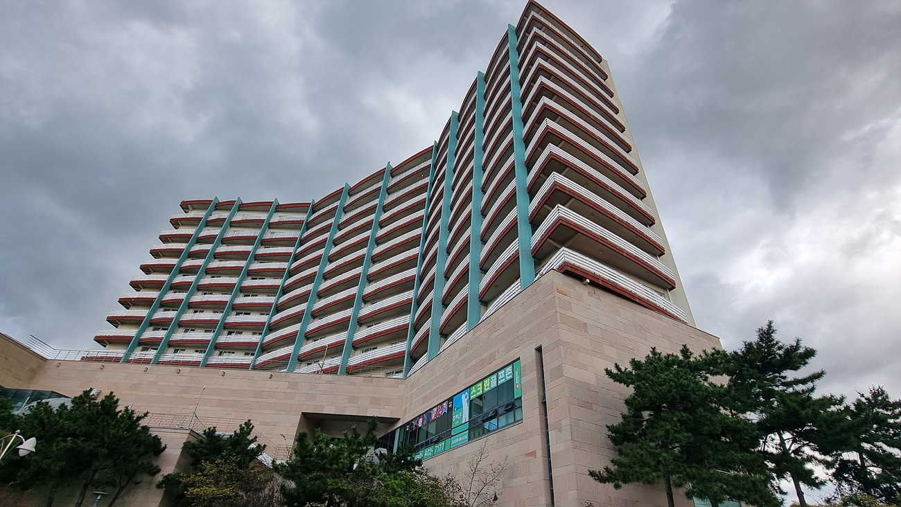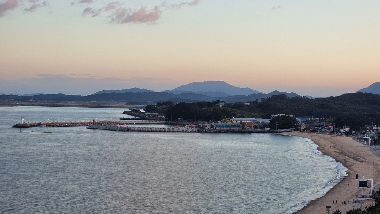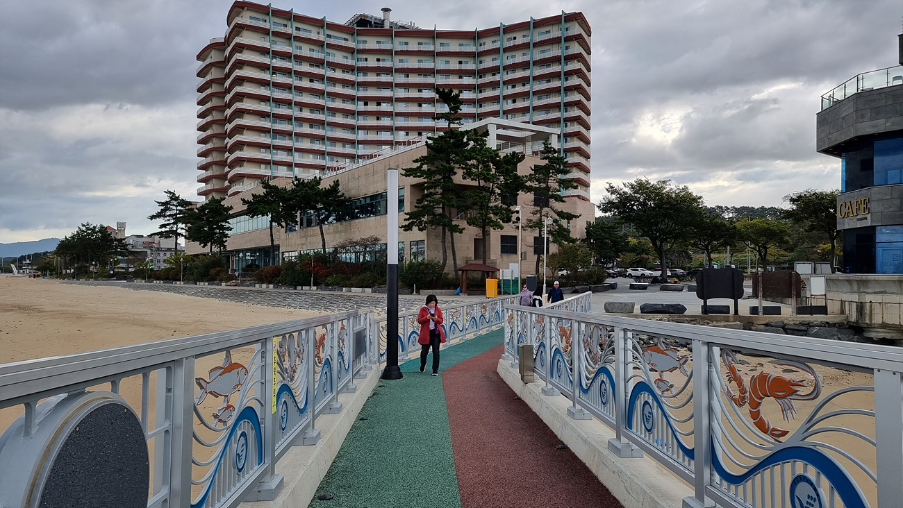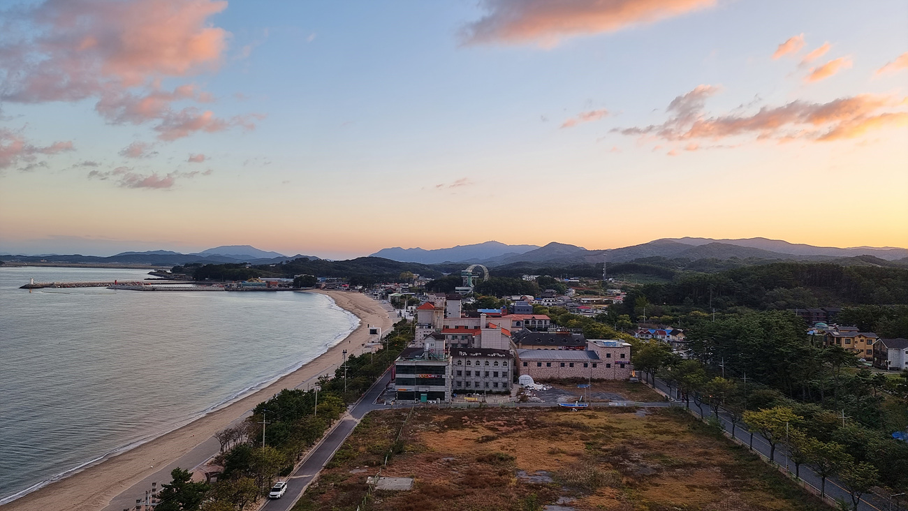 무창포갯벌의 남쪽 끝, 홀로 우뚝 선 용평리조트 비체 팰리스는