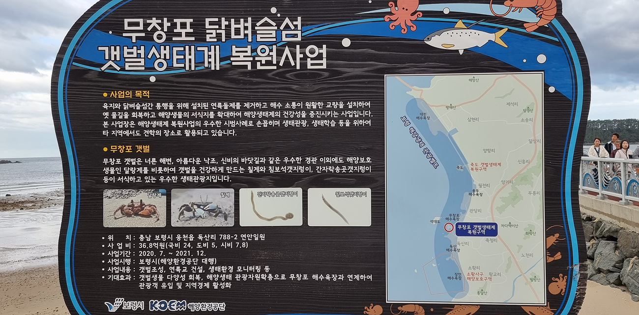 36,8억의 자금을 투입하여 갯벌조성, 다양성회복, 해양생태 관광자원 확충으로