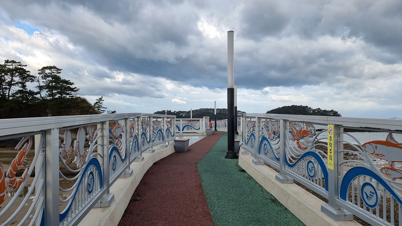 해양생물의 서식지를 확대하고 해양생태계의 건강성을 증진시키는 사업으로 닭벼슬 섬까지 다리를 설치했다,