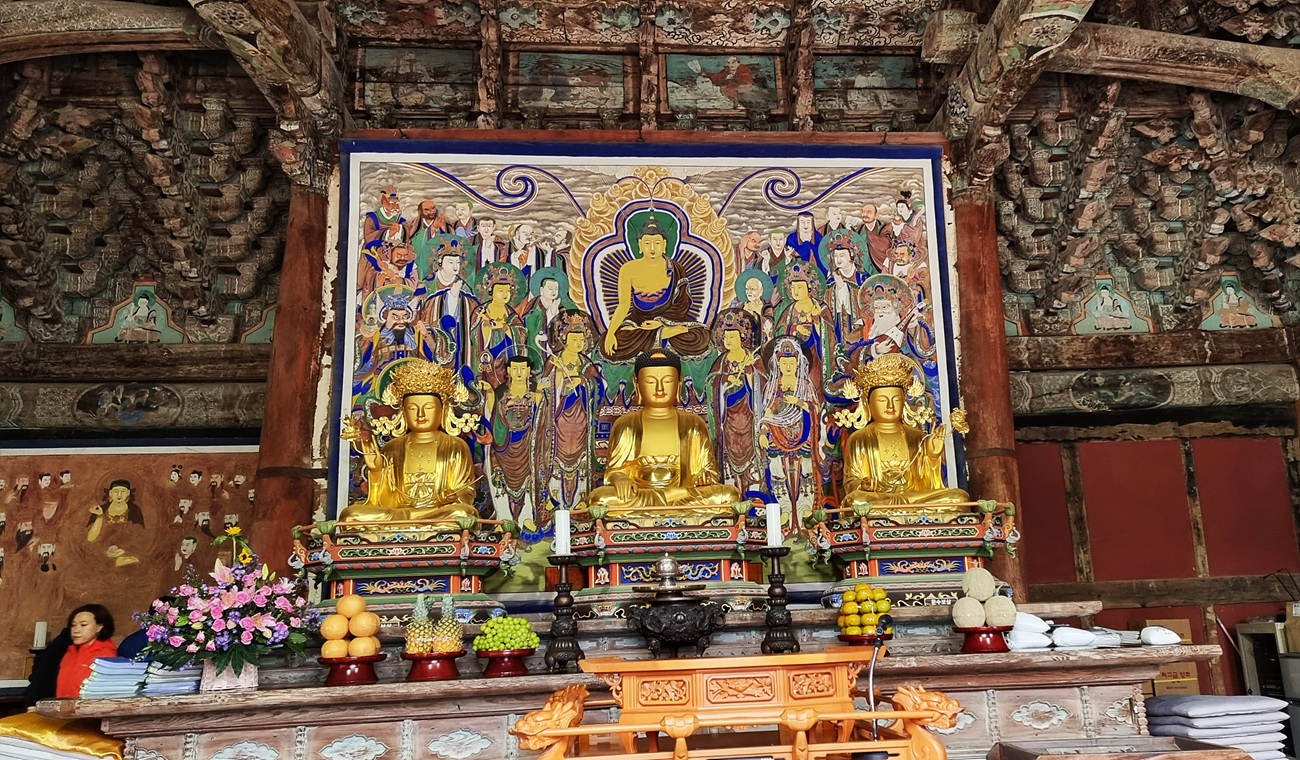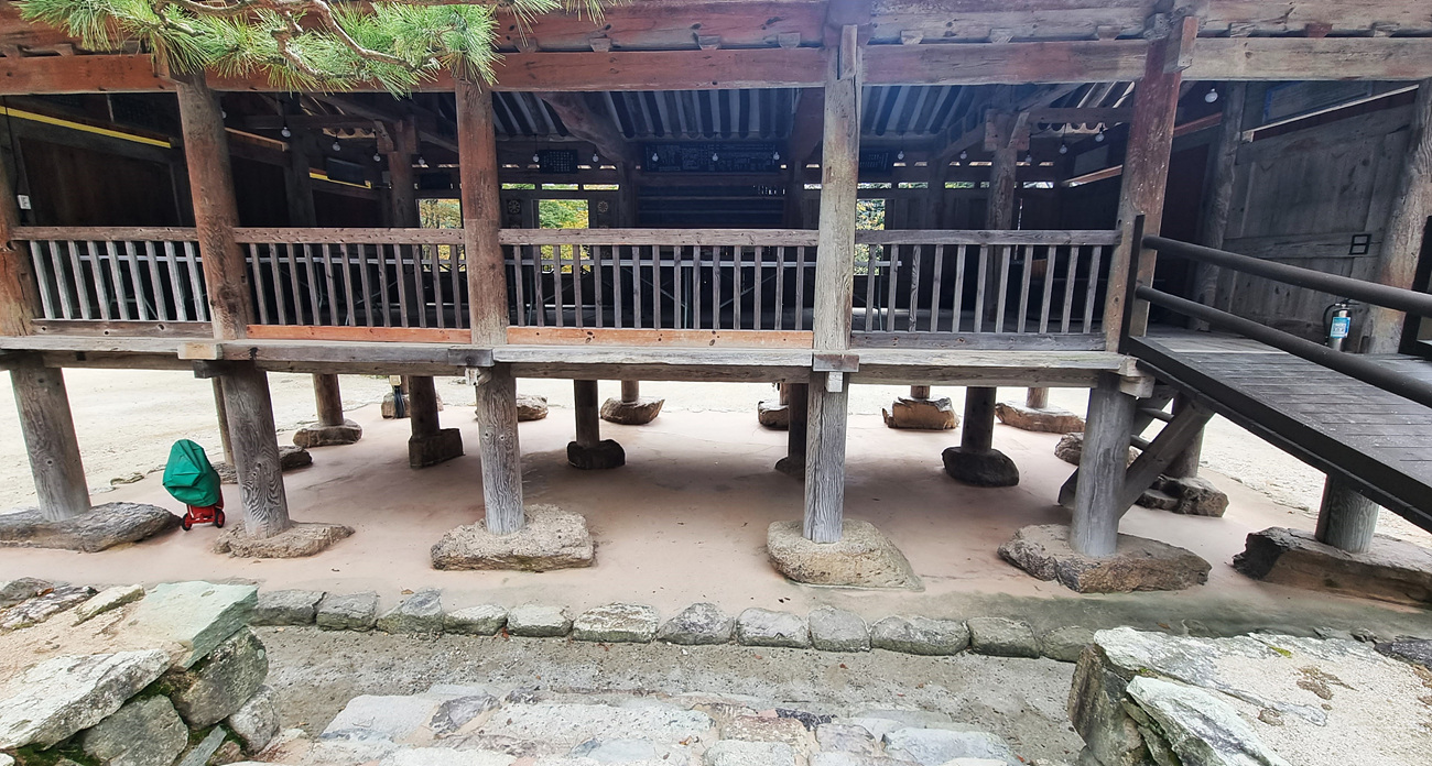 2층은 설법을 듣는 강당으로 활용하고 있어며 루 아래를 통과하며 고개를 숙여 겸손한 마음으로 부처님을 뵐 수 있도록 했다는 의미가 있다,