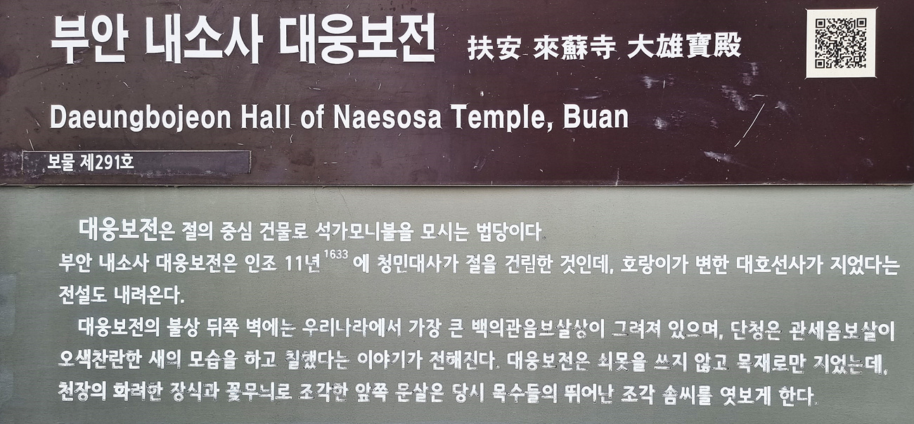 부안 내소사 대웅보전에 대한 안내다,