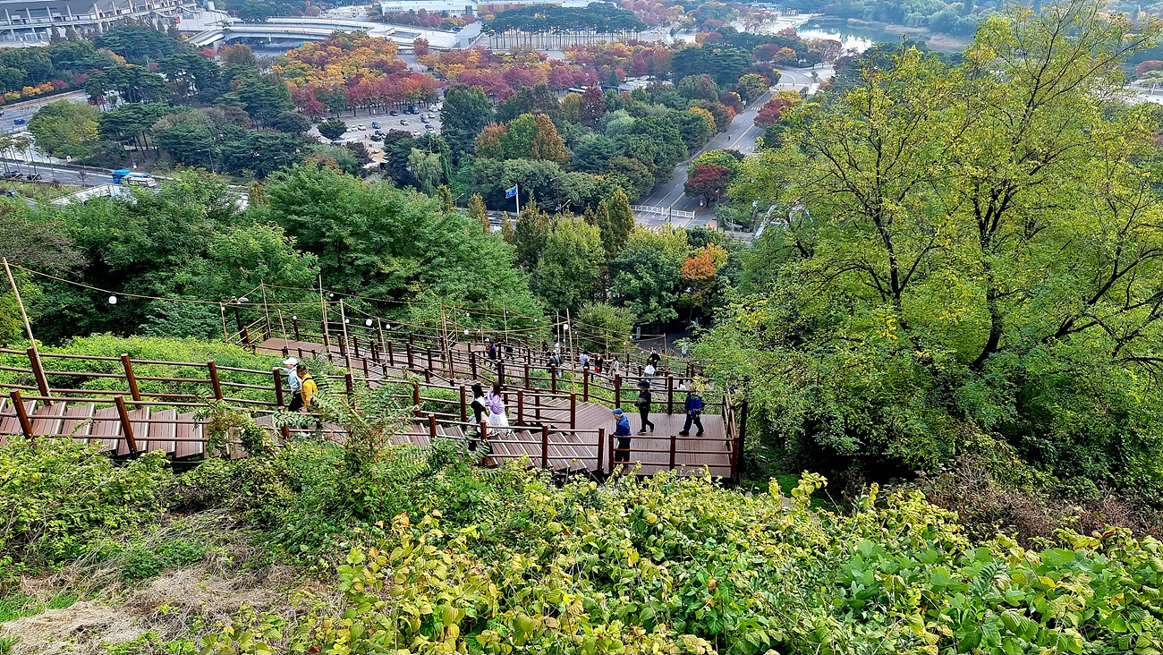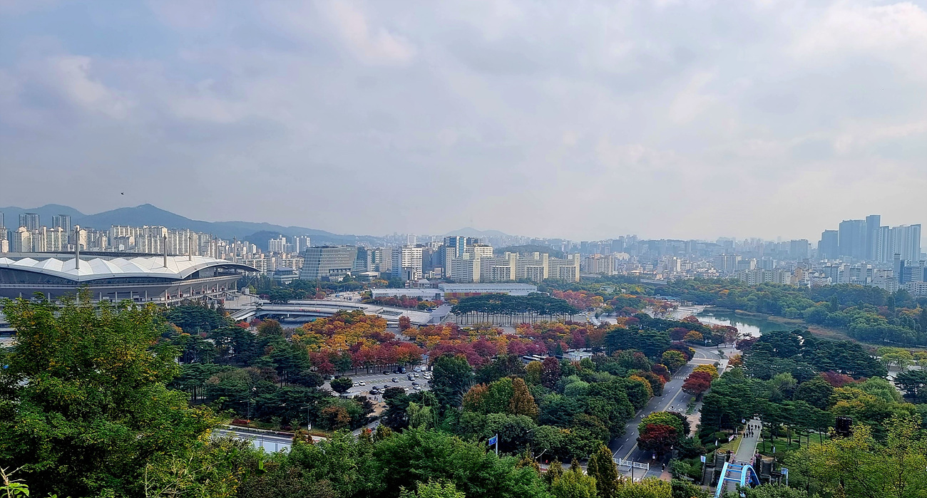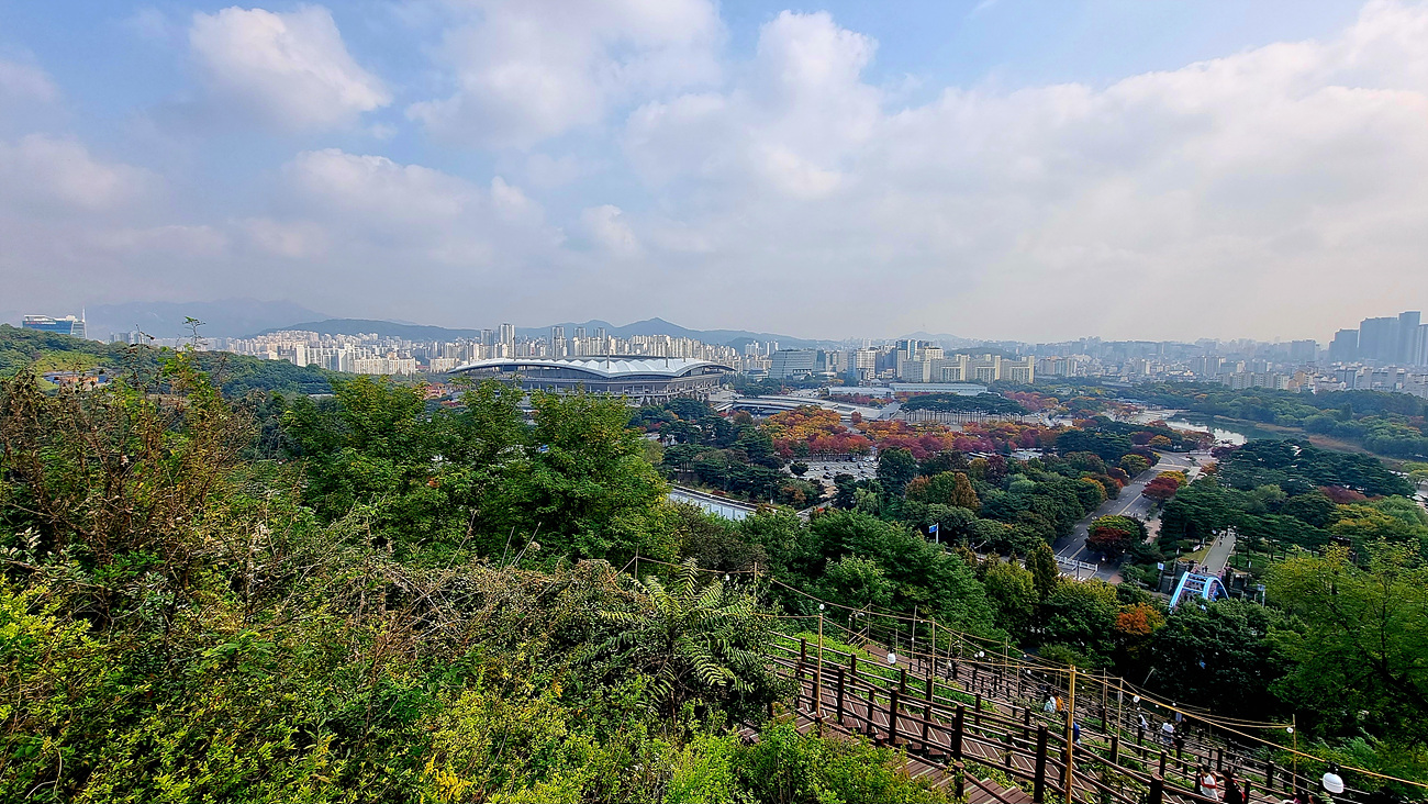 하늘계단 정상에 서면 월드컵경기장이 한 눈에 조망돠는 조망처다,