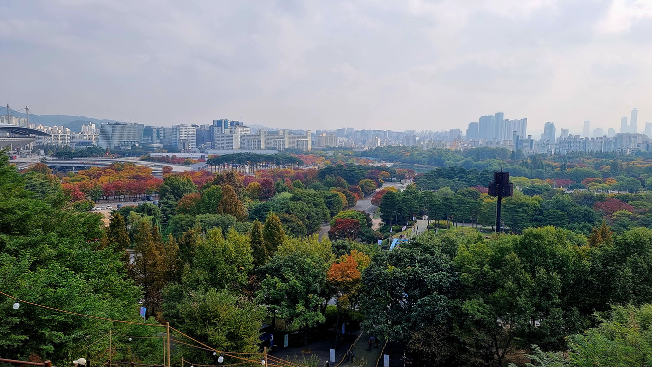 월드컵경기장과 평화의 공원 그리고 마포지역일대가 파노라마로 이어진다,