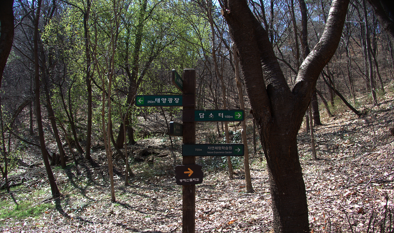 태양광장으로 가는 갈림길이 있는데 둘레길은 담소터 방향으로 가야한다