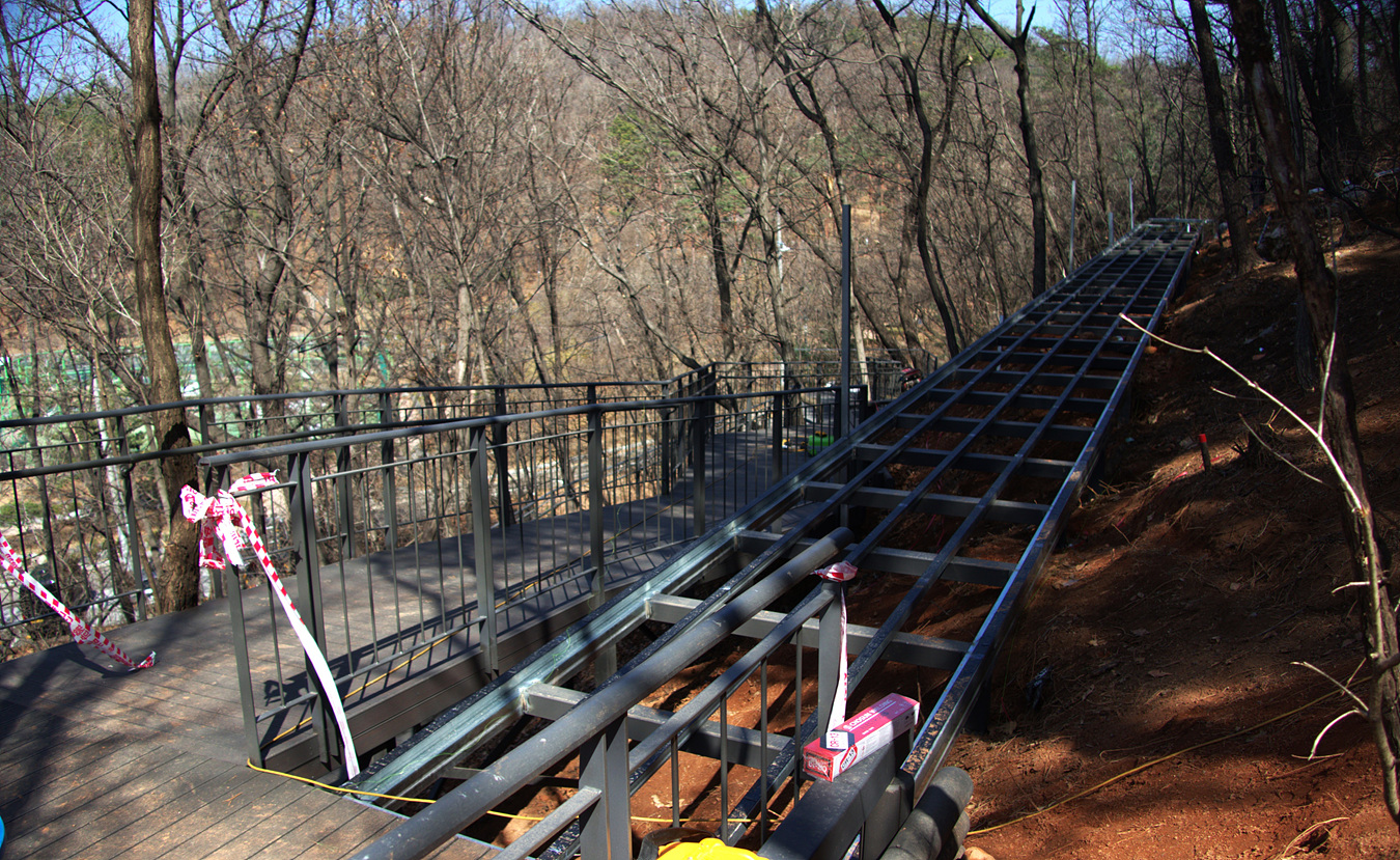 데크길을 만드는 공사를 하고 있는데, 상부까지 공사가 거의 마무리 되고 있었다,