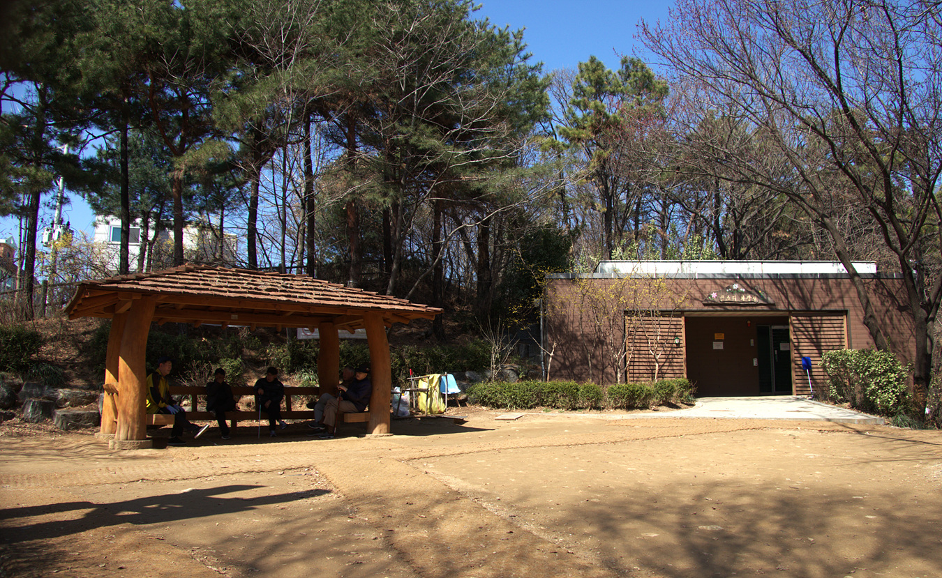 담소터에서 둘레길은 정자와 화장실 뒤로 이어진다
