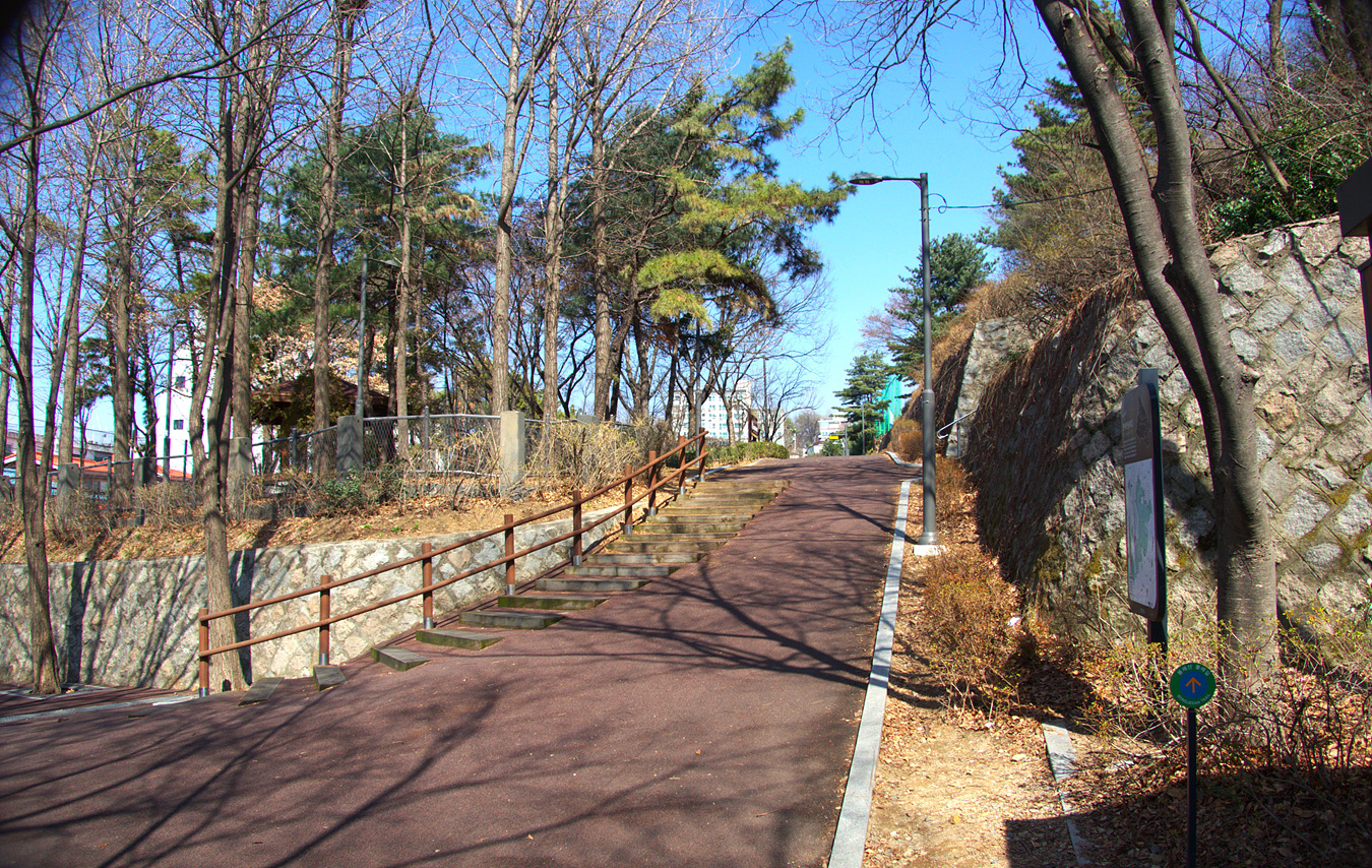 담소터로 가는 길에는 계단도 몇개씩 설치되여 있지만 길은 완만하다,