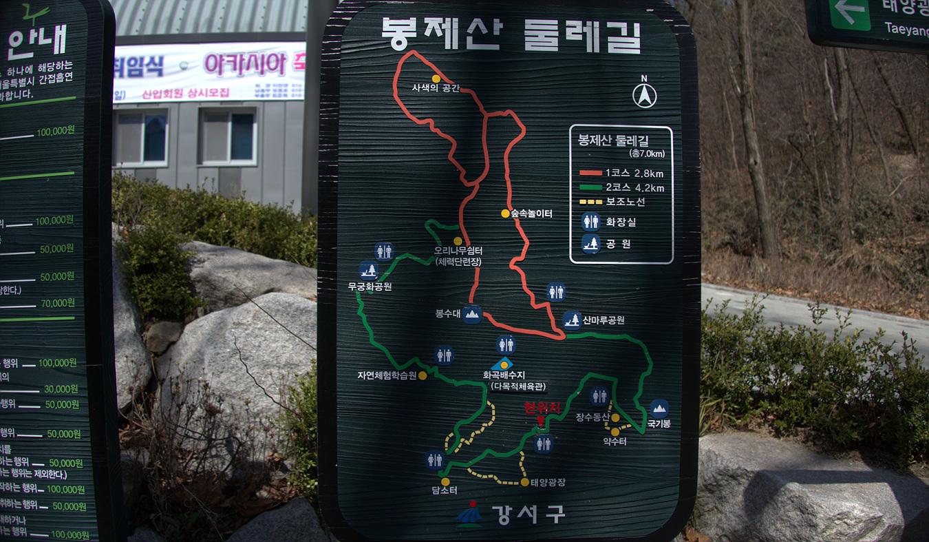 봉제산 둘레길 약사도를 보니 봉제산둘레길 1코스는 2,8km 이고 2코스는 4,2km로 모두 7km 남짓이다, 여기서 보조노선은 제외 했어니 조금 더 길 수도 있겠다,