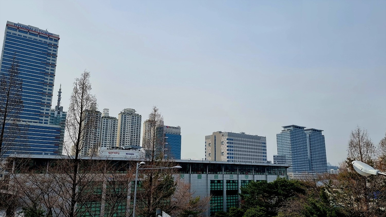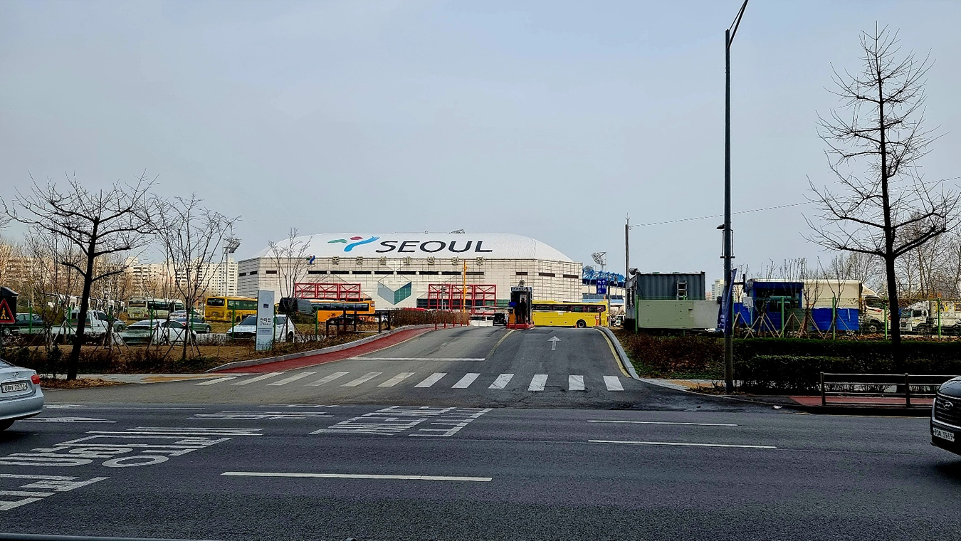 목동동로를 건너 뉴아이디 빌딩 앞에서 보는 목동아이스링크, 한때 김연아 신드름으로 빙상운동 붐이 일자 스케이팅을 배우려 지원한 아이들이 넘처나든 곳이기도 했다,