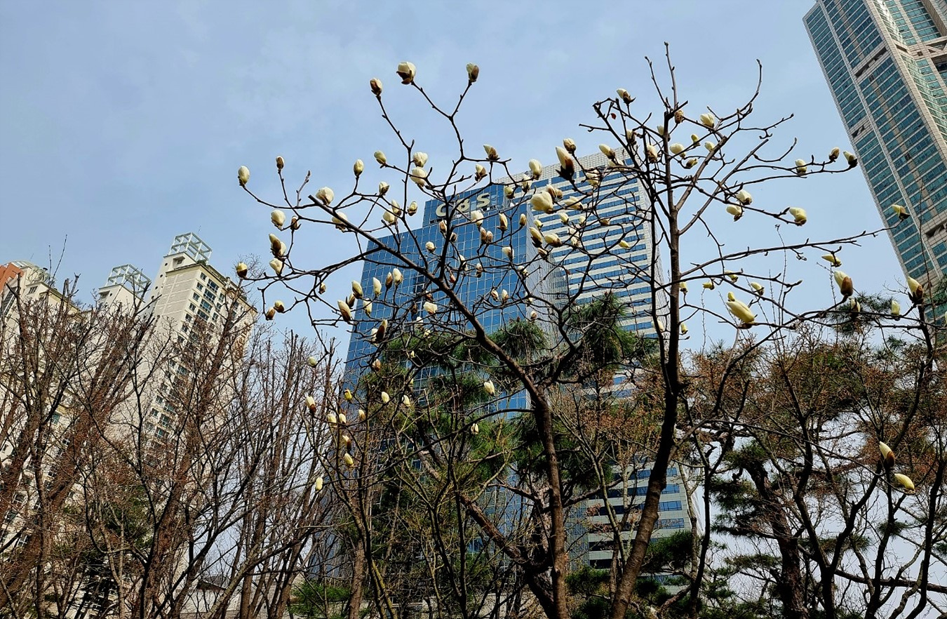 오목공원에 피여나는 목련이