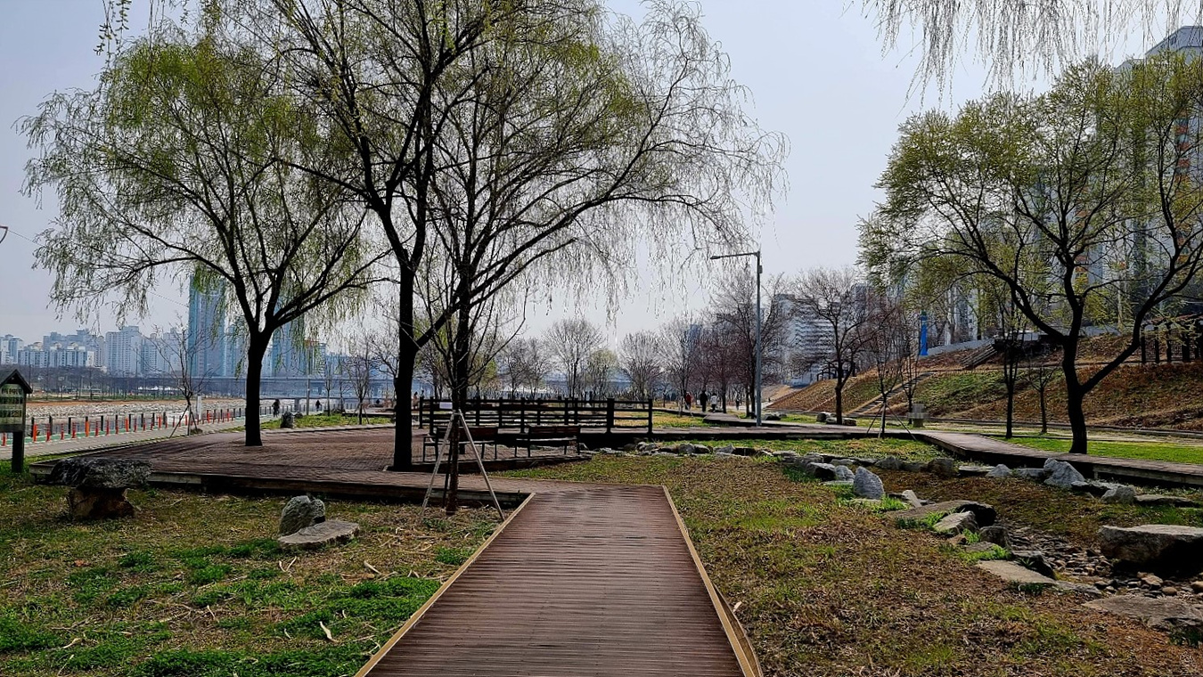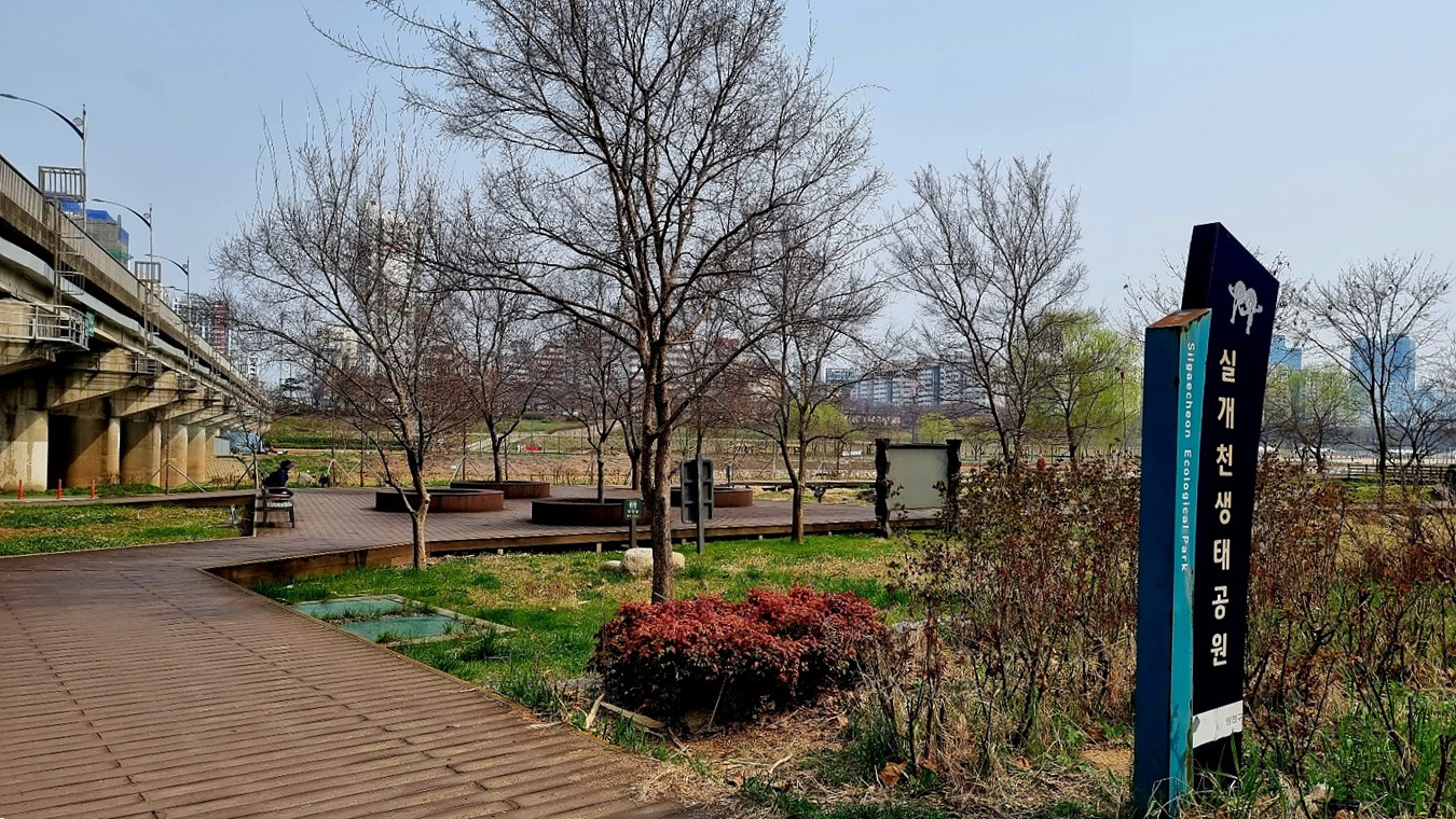 실개천 생태공원 주변에 꾸며놓은 시설물들 만으로도 여유공간은 될 수 있을 것 같다,