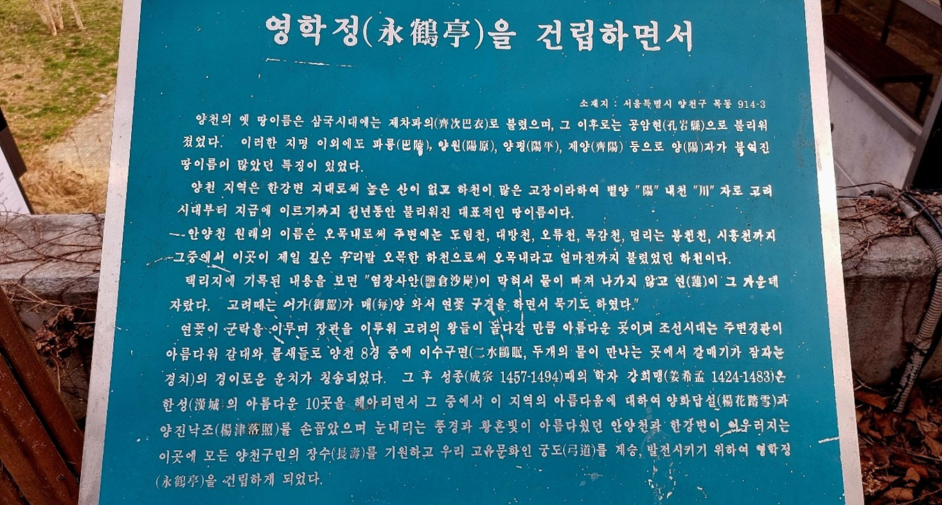 영학정을 지나가면 목동 스포츠 단지로 축구장과 야구장 그리고 목동실내 빙상장이 있는 곳, 오목교역 3번, 4번출구에서 약1km거리다,