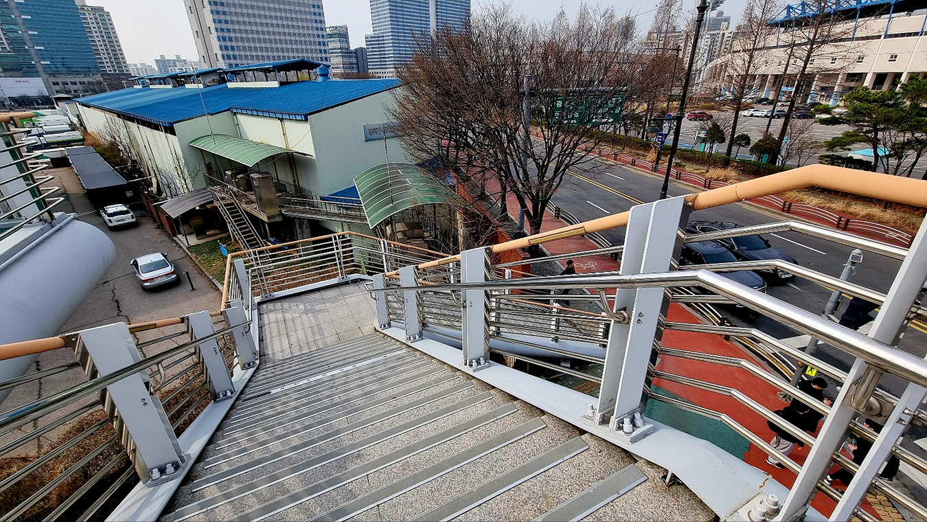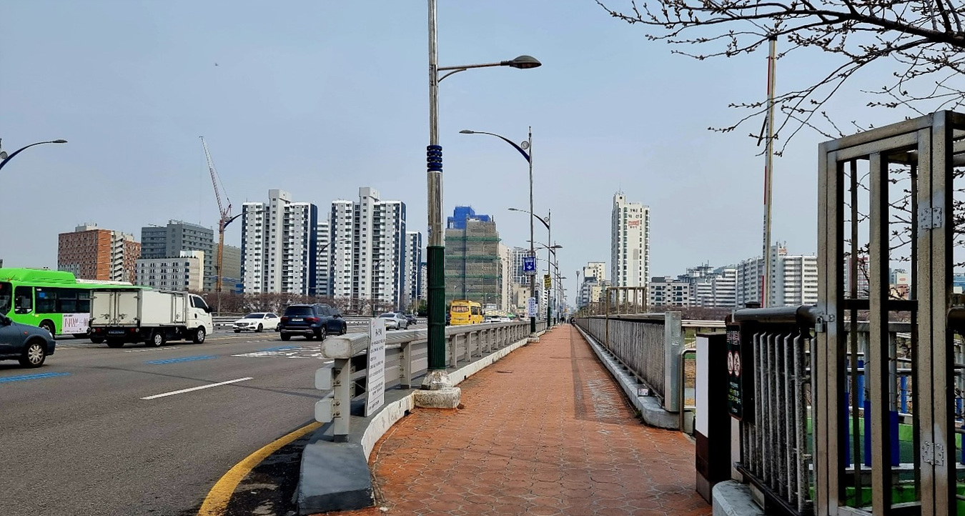 인도와 자전거로가 함께인 육교를 건너가면