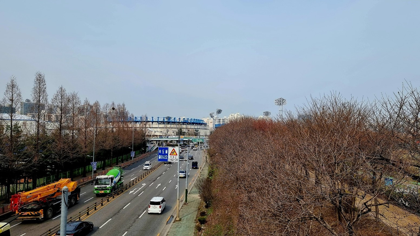 목동야구장과 목동아이스링크옆 목동 동로를 따라 뉴아이디 빌딩과 목동트윈빌 아파트로 방향으로 간다,