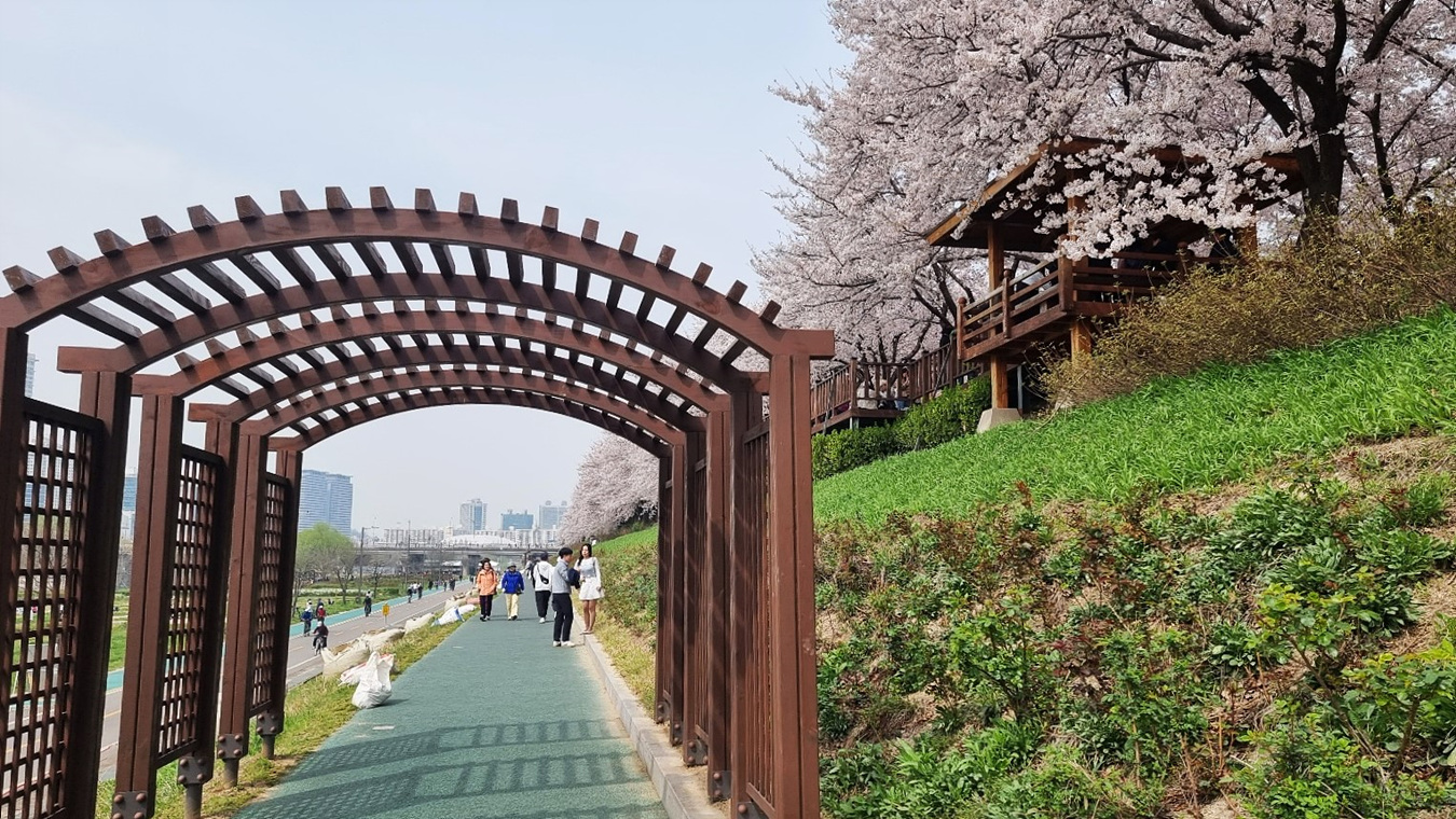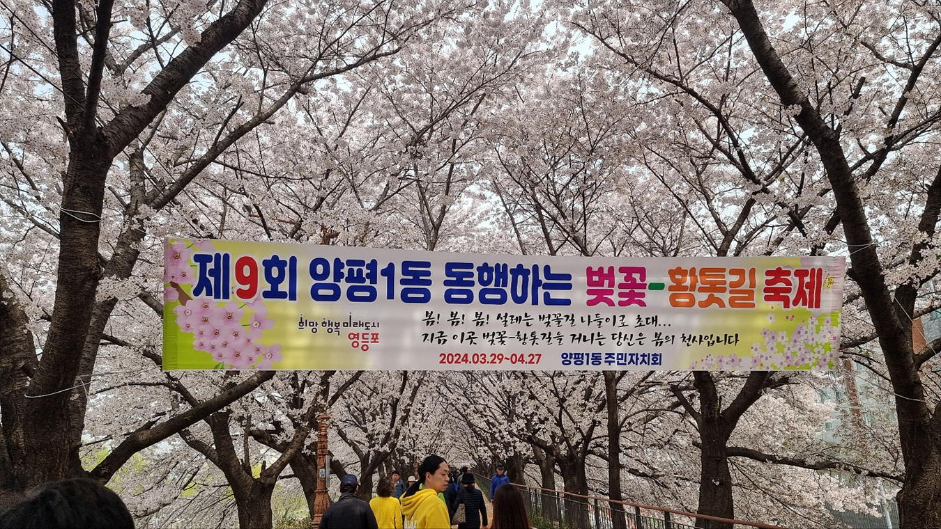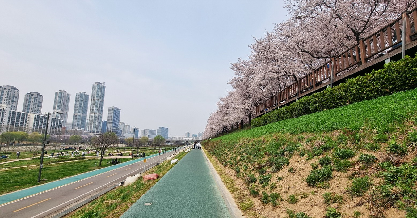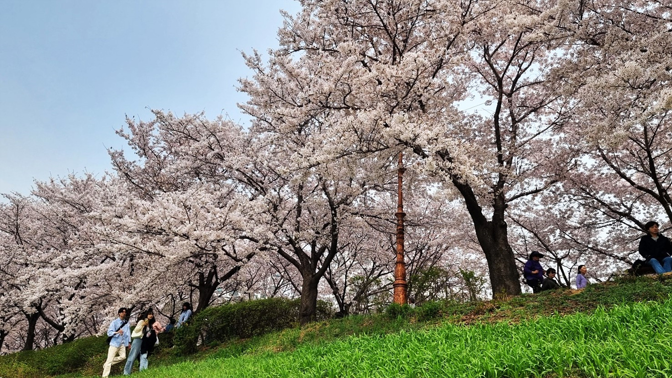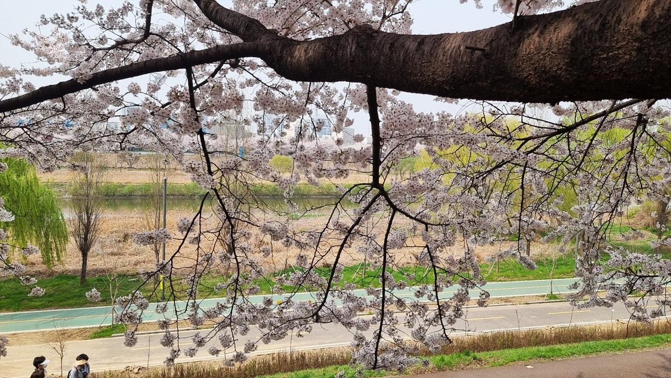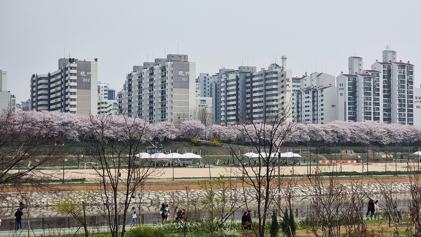 양천우체국 뒤로 해서 파리공원까지 왔다, 일년중 가장 많은 사람들이 찾아오는 봄날 2024년 안양천 벚꽃구경을 했다,