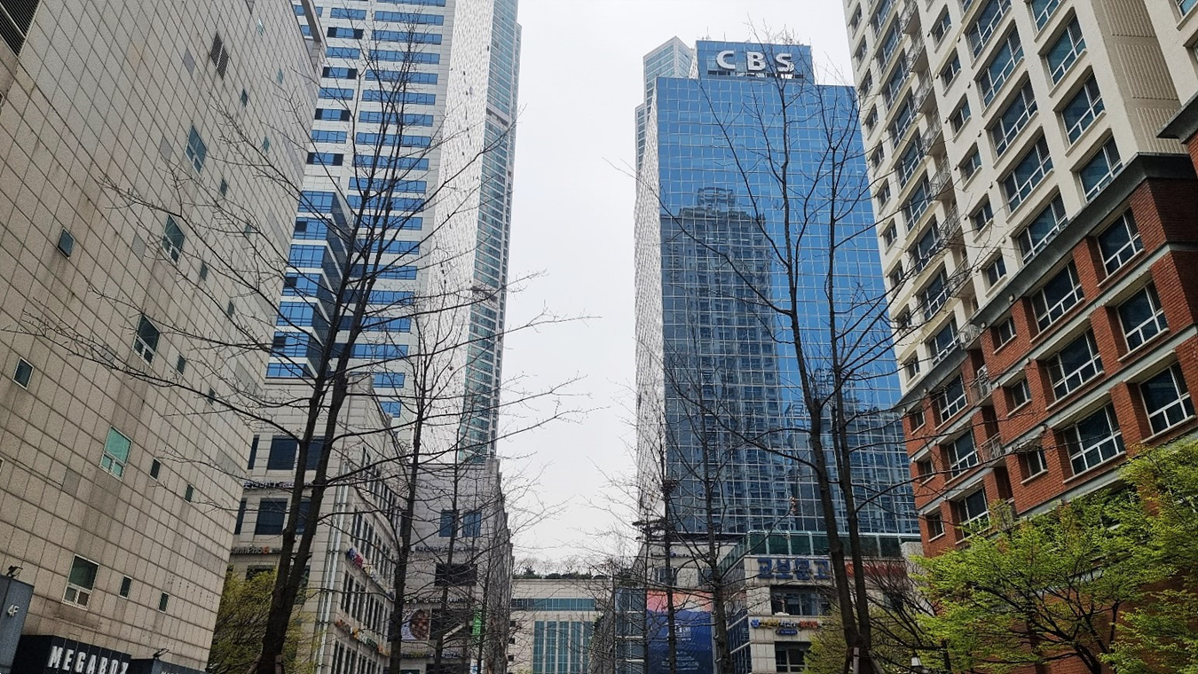 CBS와 현대41타워 사이로 현대백화점으로 들어가