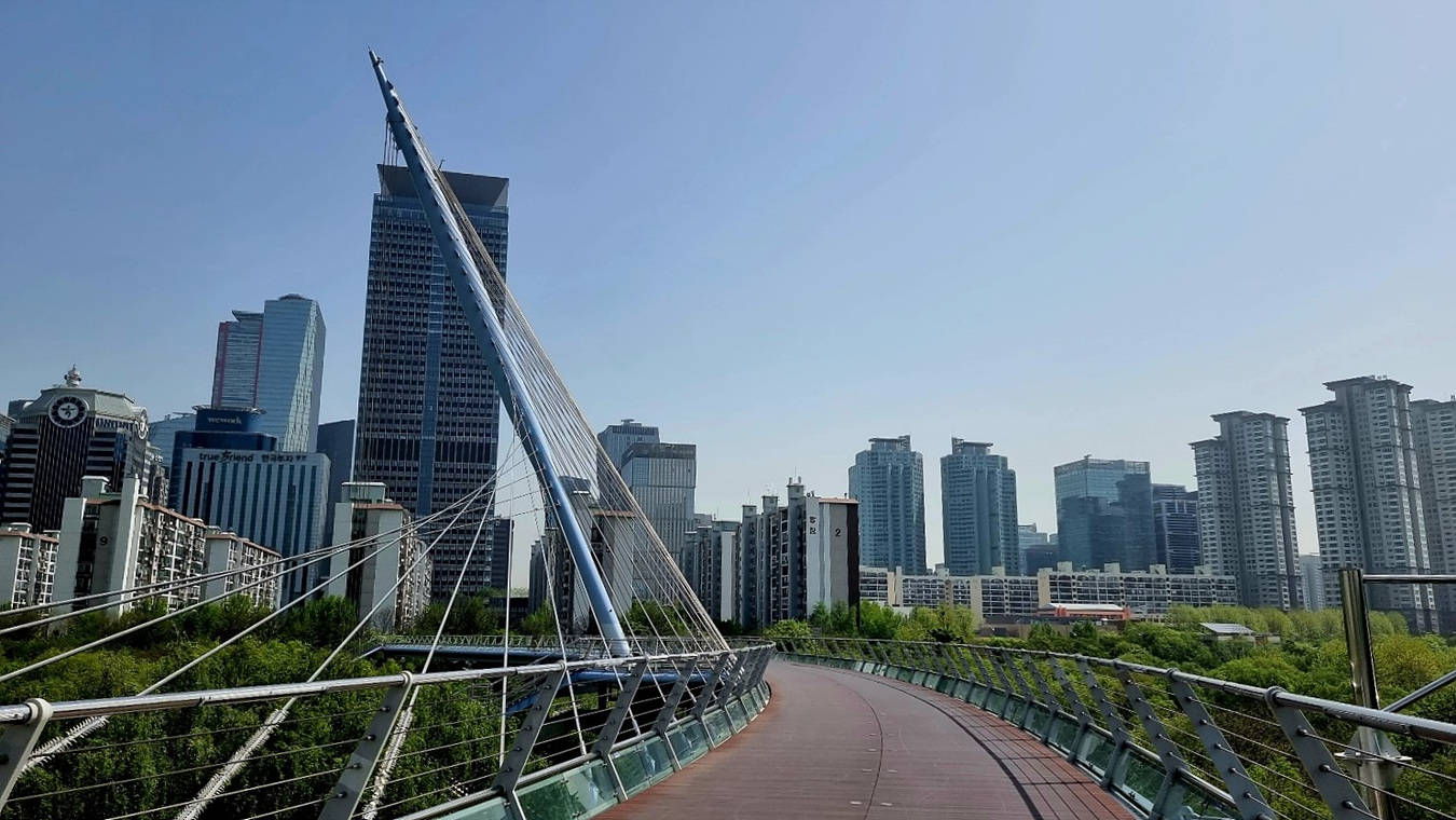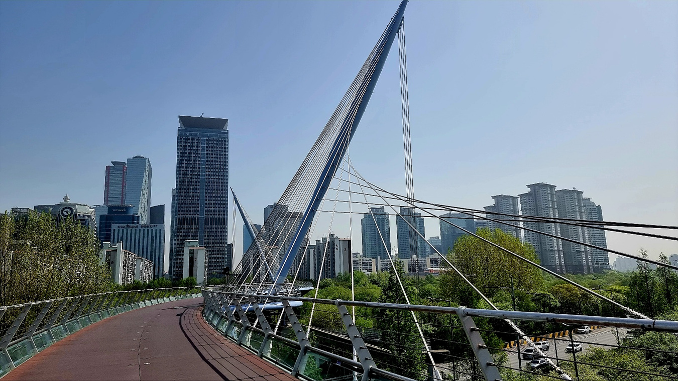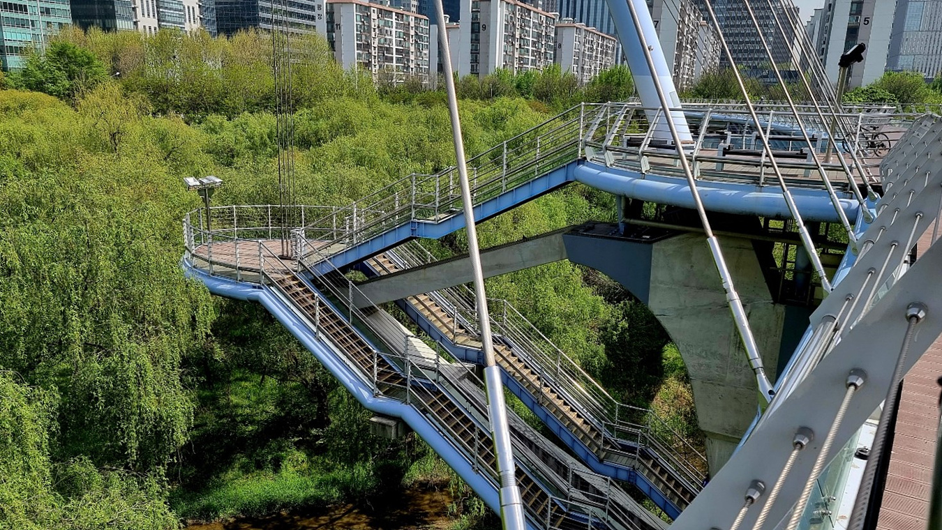 국내 최초의 비대칭 사장교(탑을 세워 케이블을 매달아 다리를 지탱)형태의 보도교다.