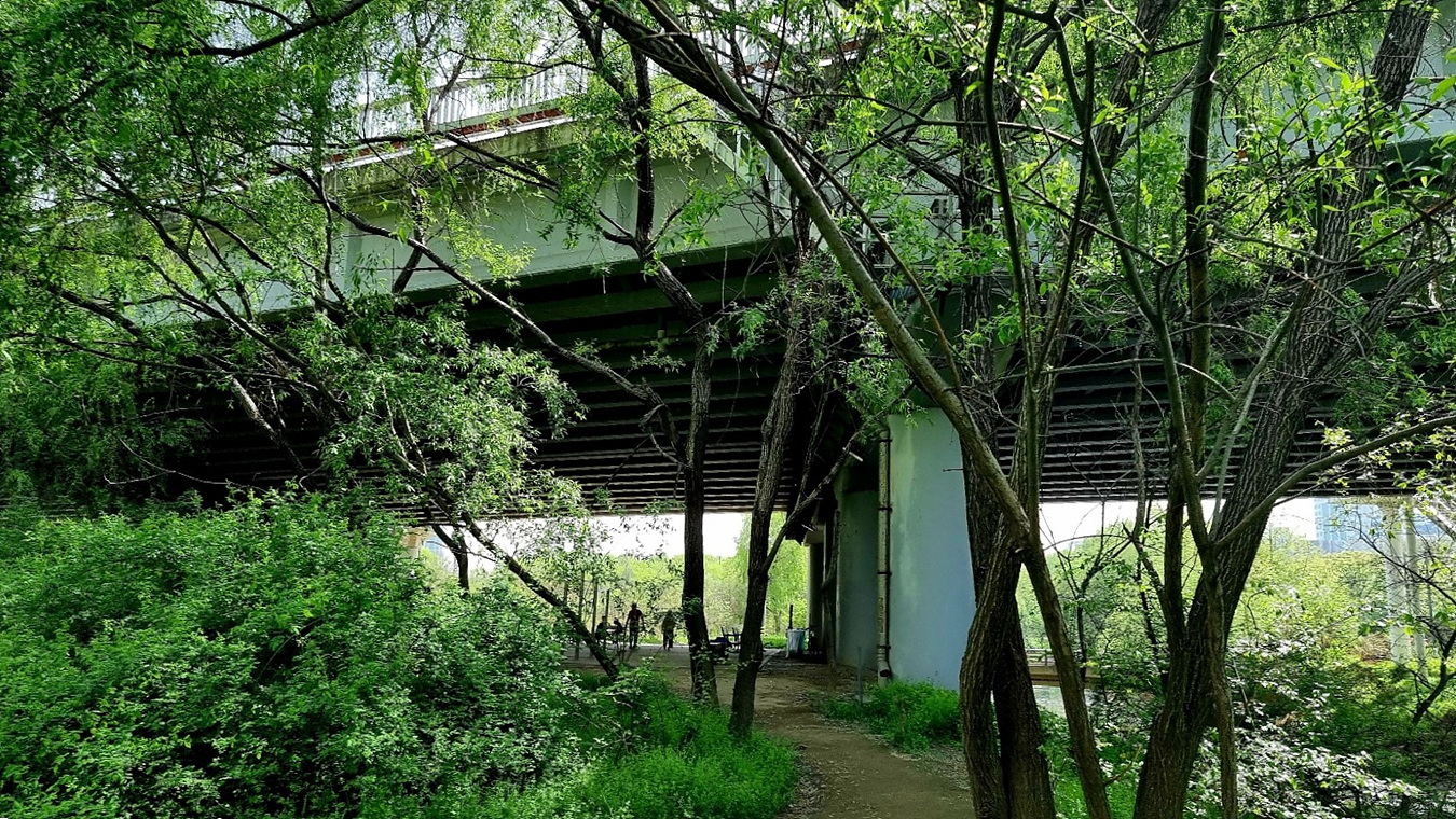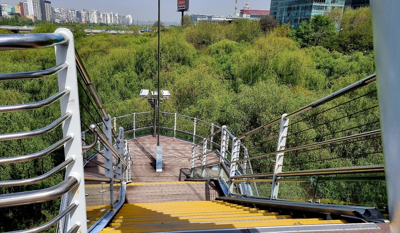 샛강을 모두 건너가면 여의도지만 2번째 기둥에서는 샛강생태공원으로 내려가는 계단이 있다,