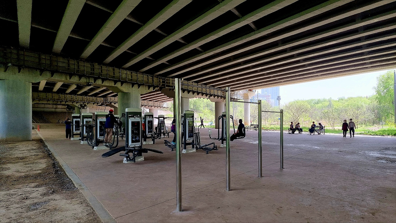 여의교 아래는 이렇게 시민을 위한 운동 기구도 설치되여 있고