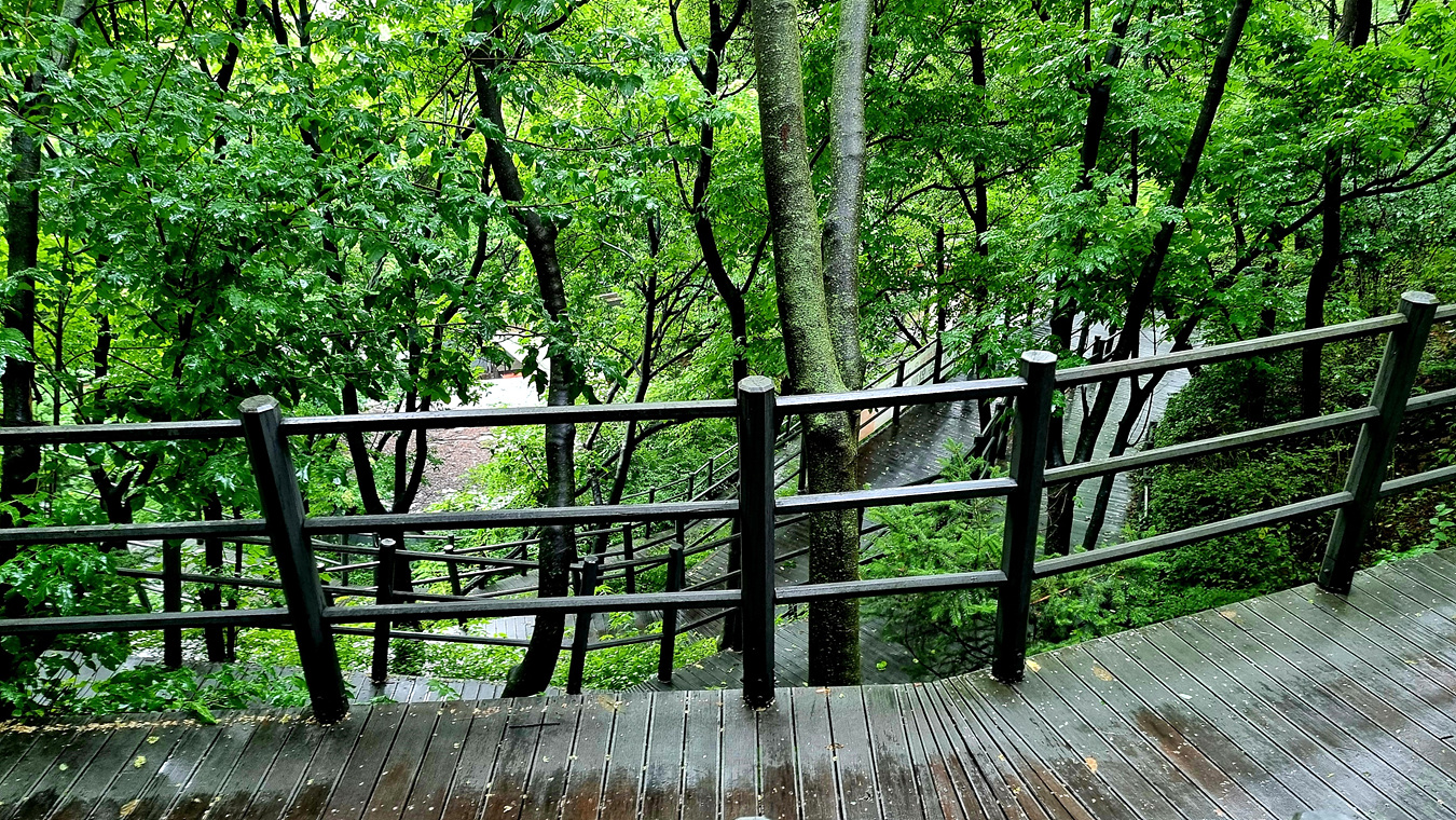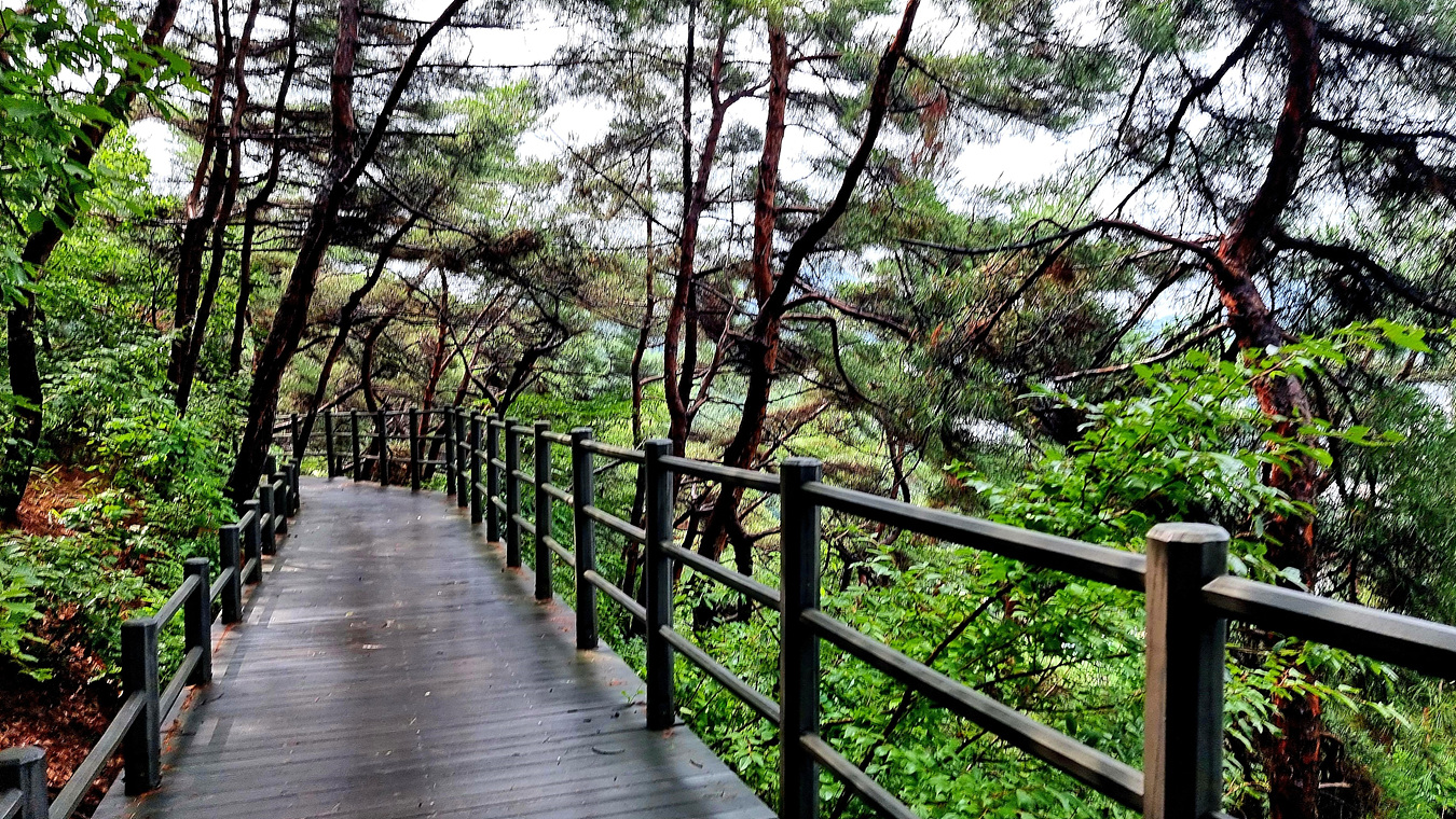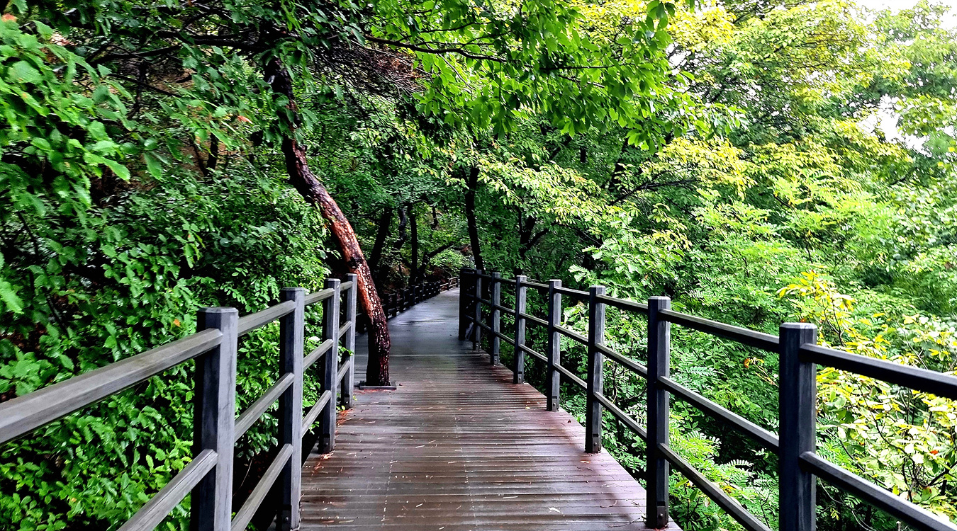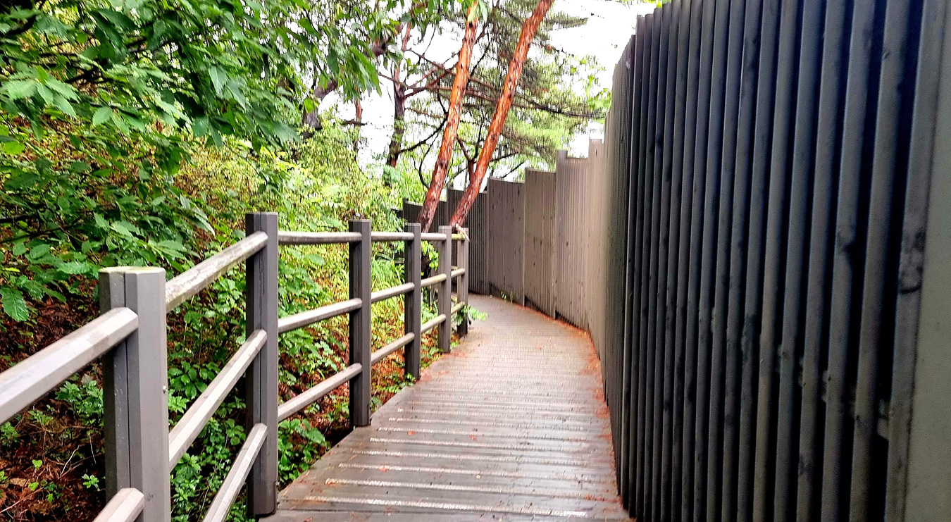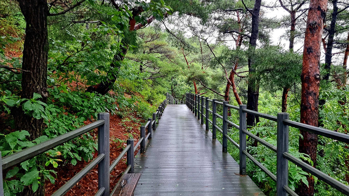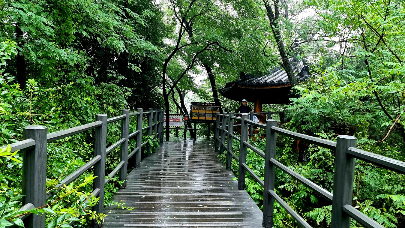 장마기간이라 어딜가나 비를 맞을 수 밖에 없어 안전한 길을 찾아 온 데크길,
