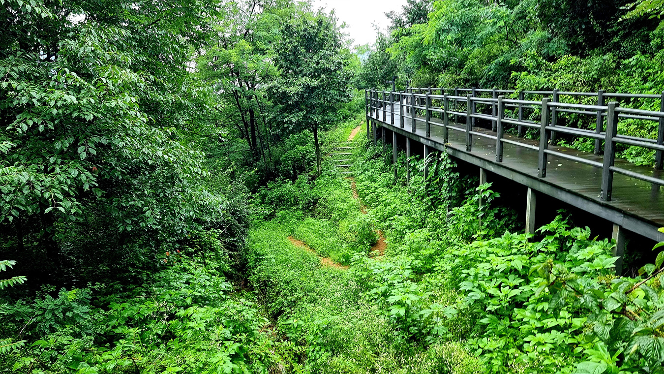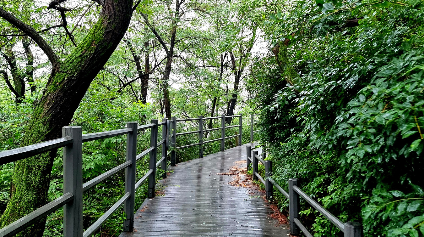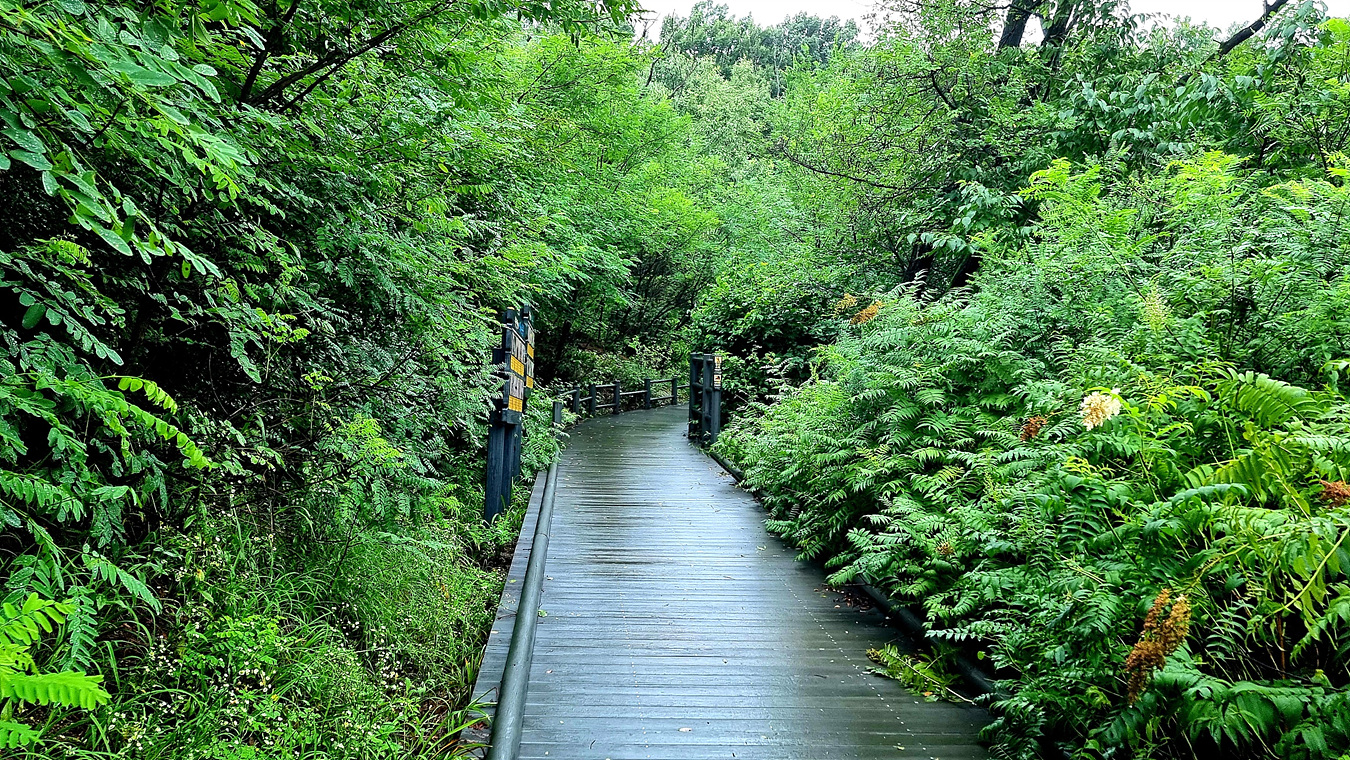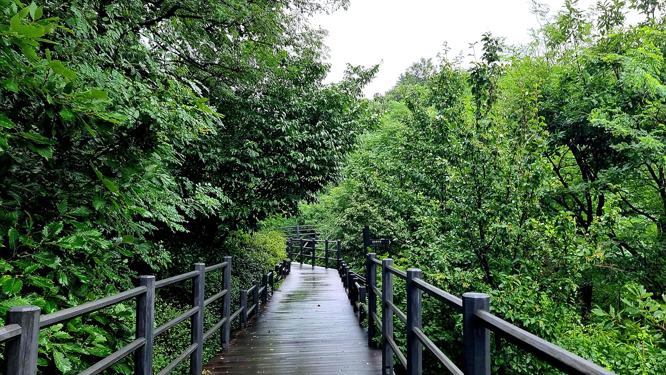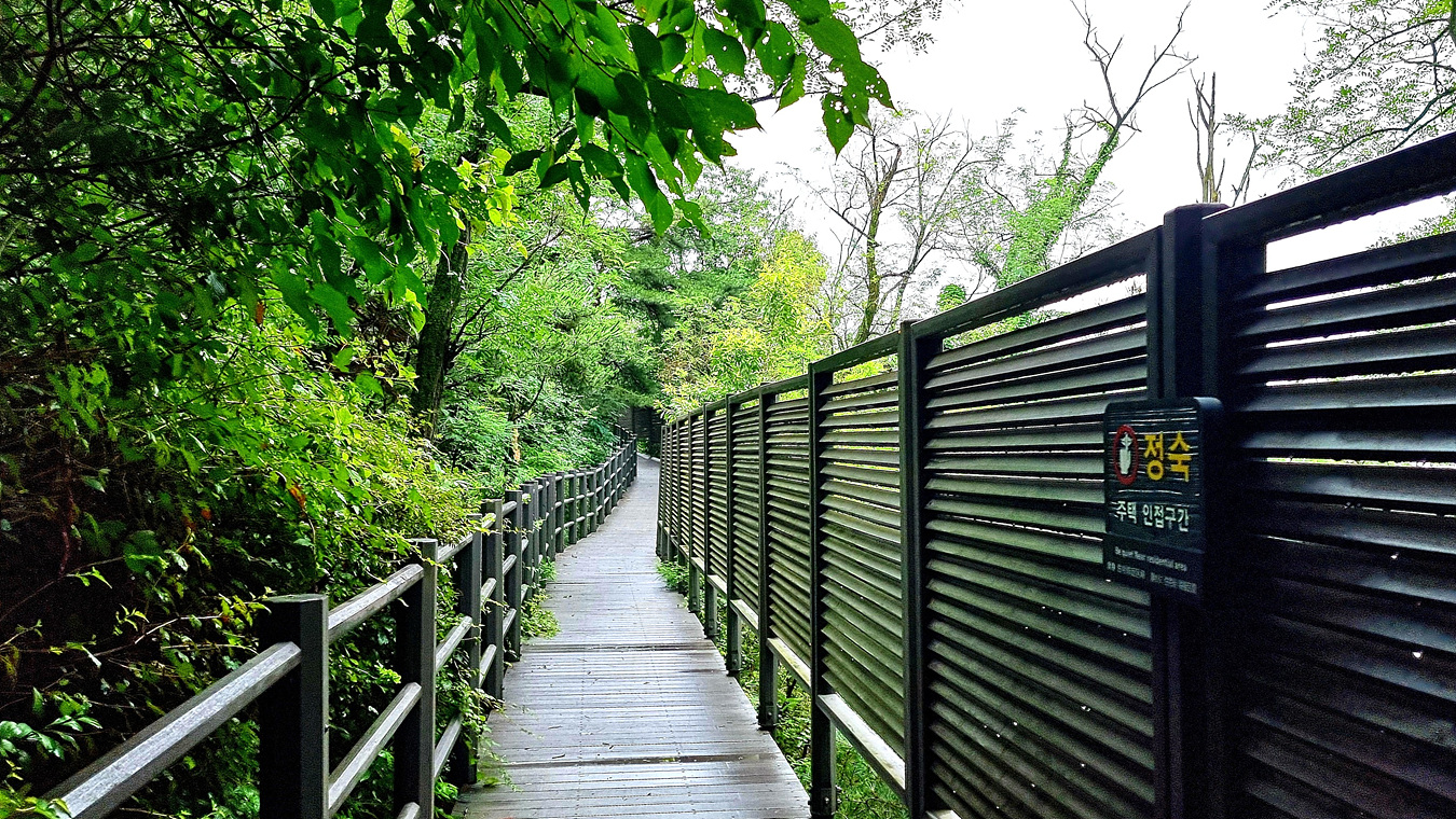 장마기간이라 어딜가나 비를 맞을 수 밖에 없어 안전한 길을 찾아 온 데크길,
