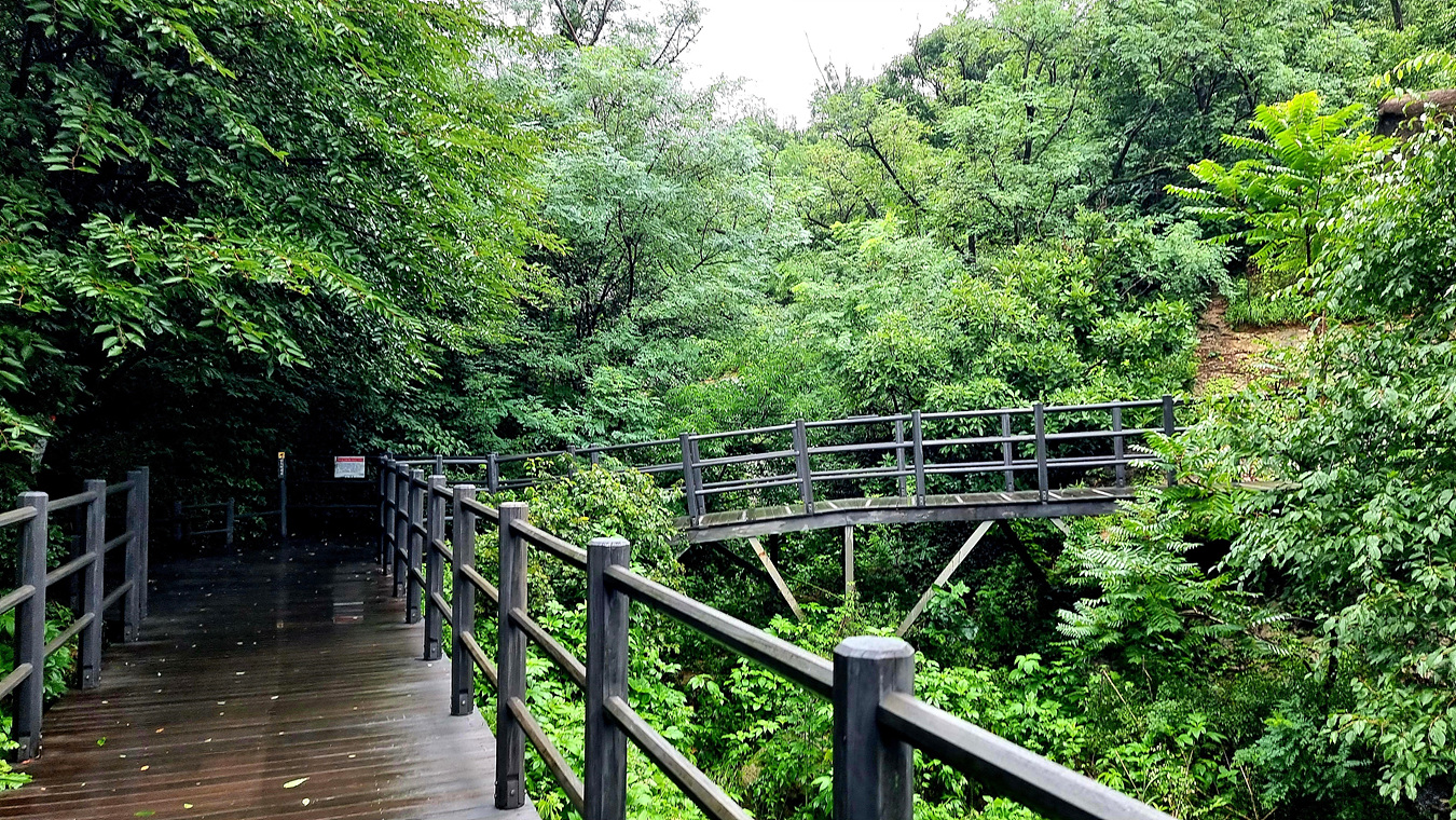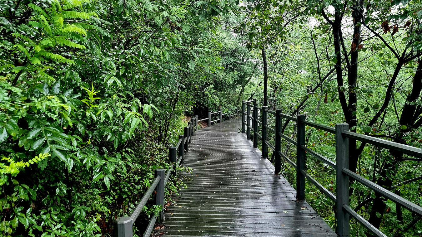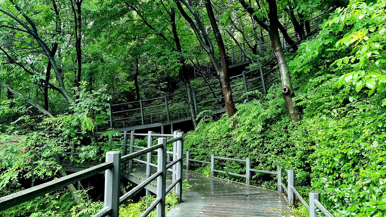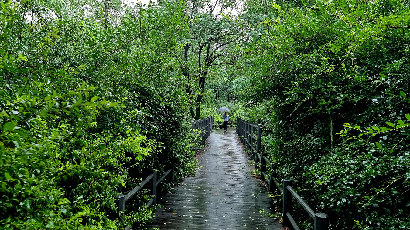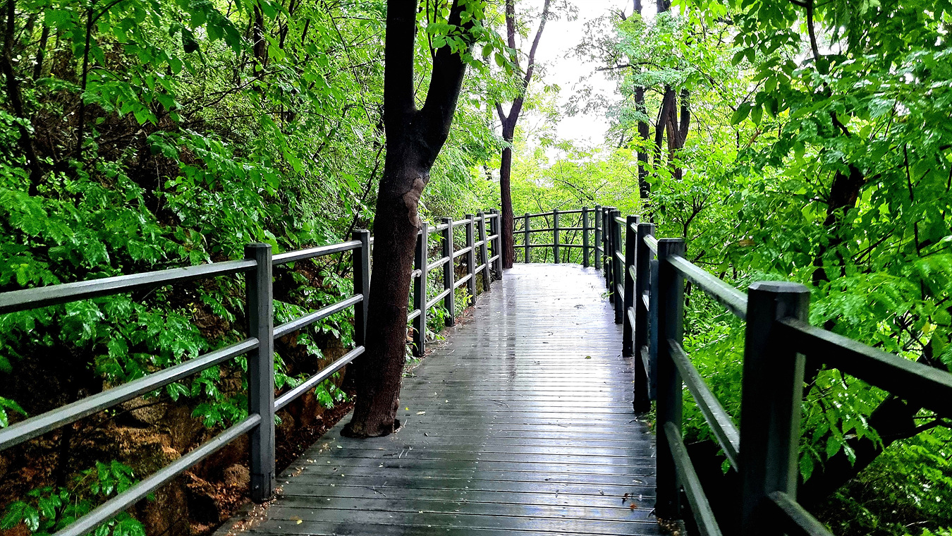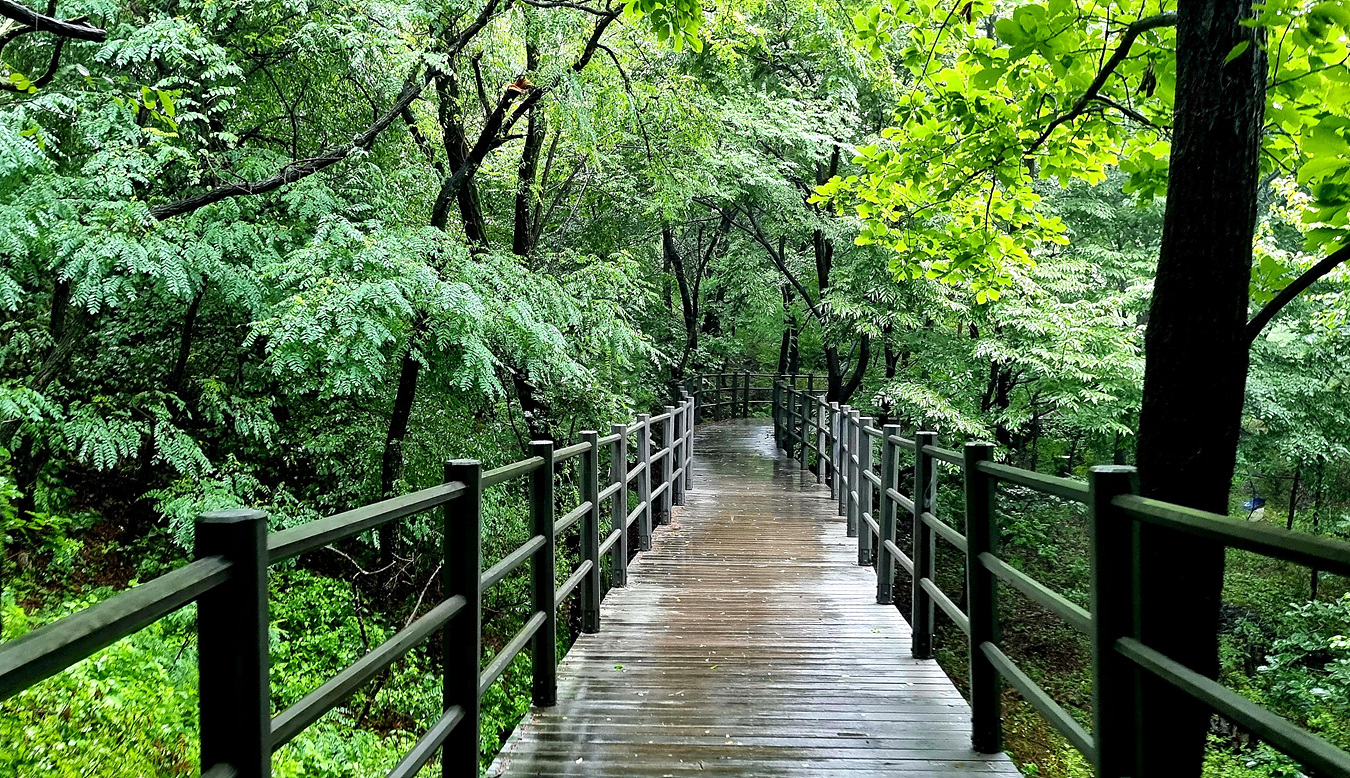 장마기간이라 어딜가나 비를 맞을 수 밖에 없어 안전한 길을 찾아 온 데크길,