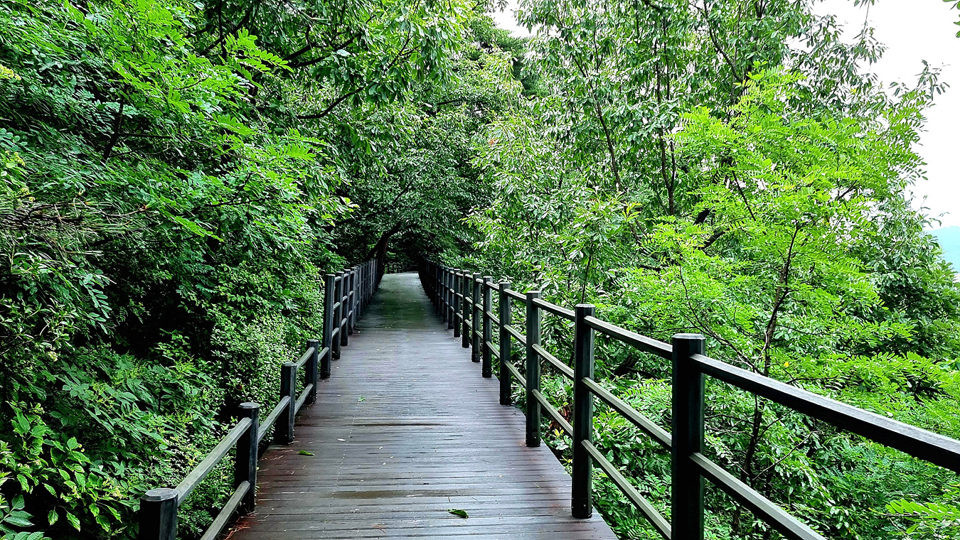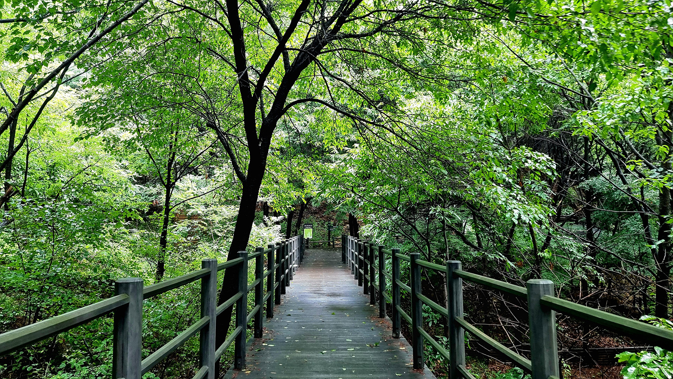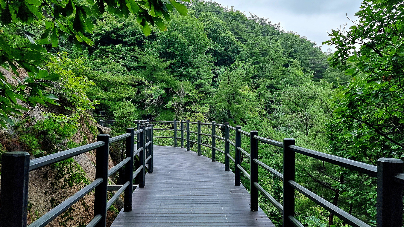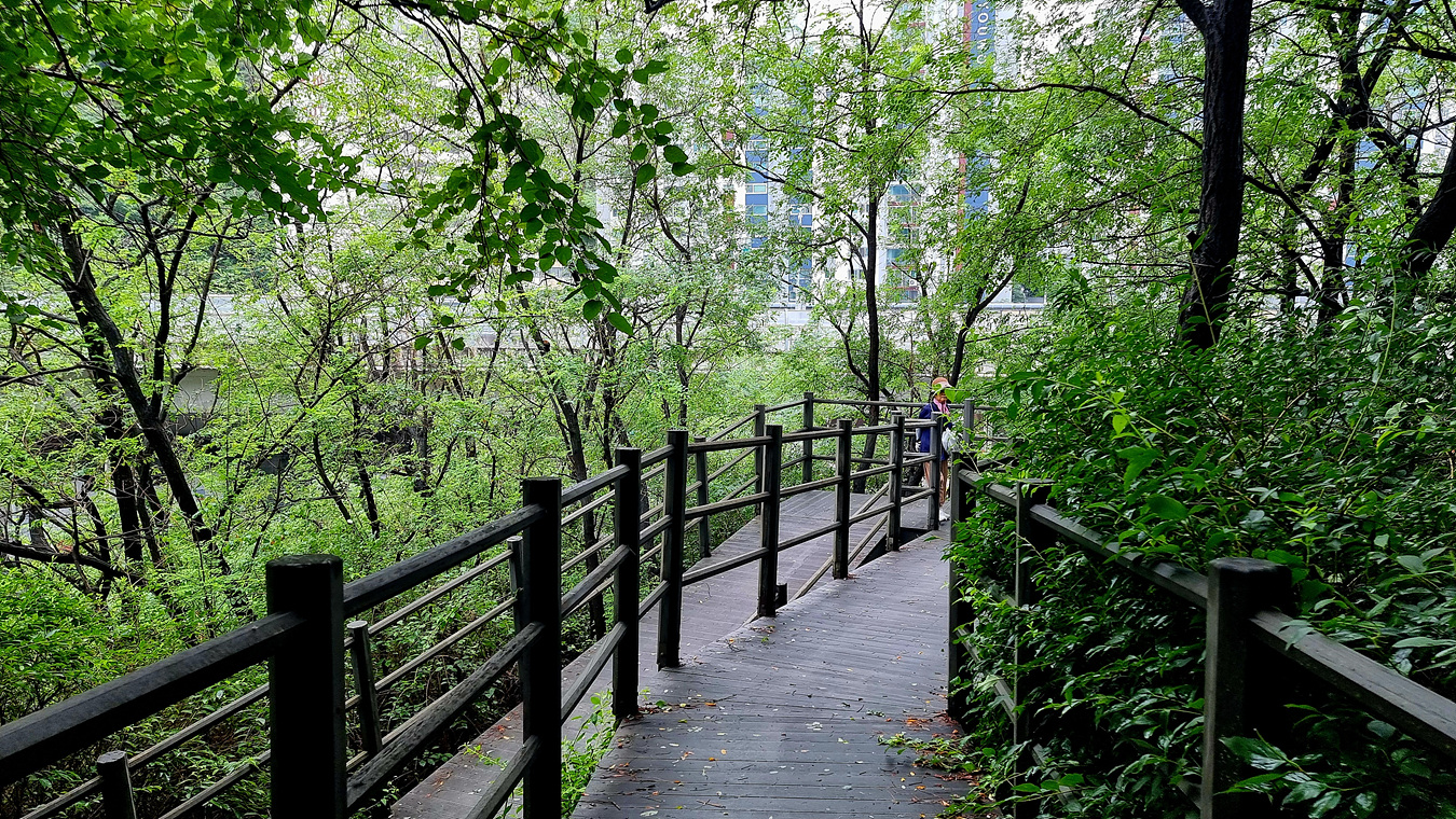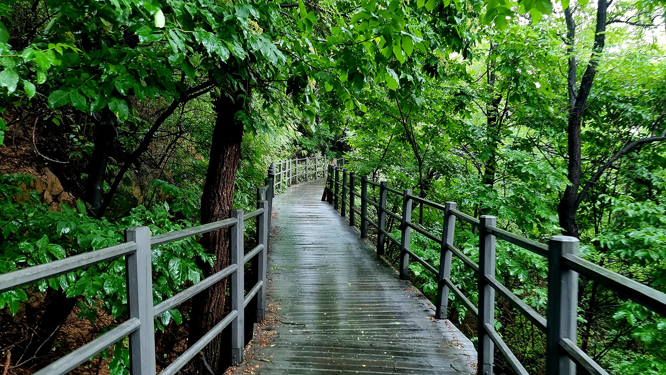장마기간이라 어딜가나 비를 맞을 수 밖에 없어 안전한 길을 찾아 온 데크길,