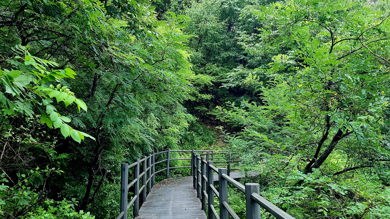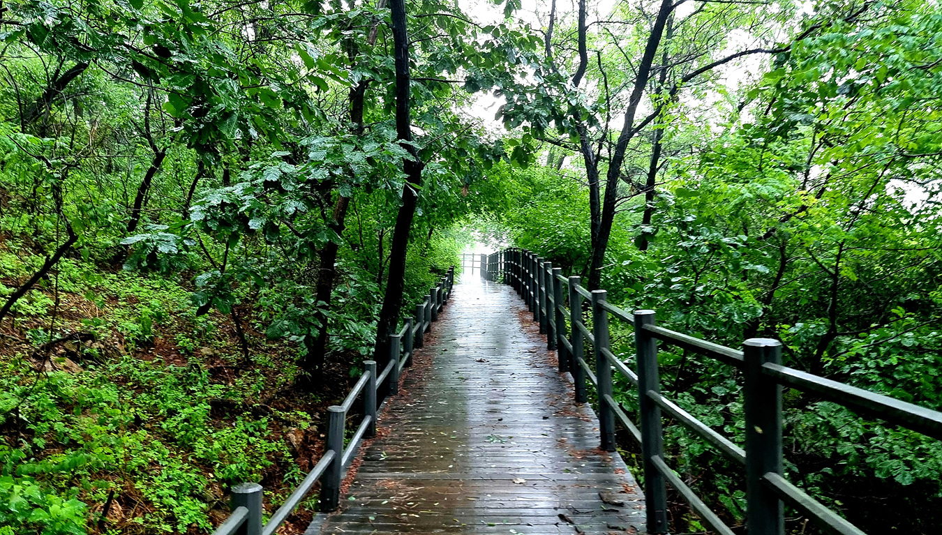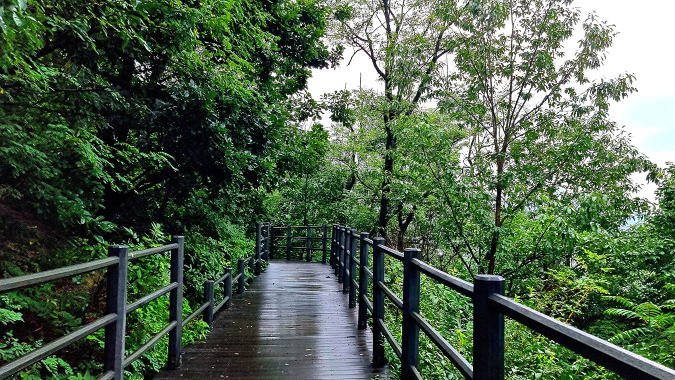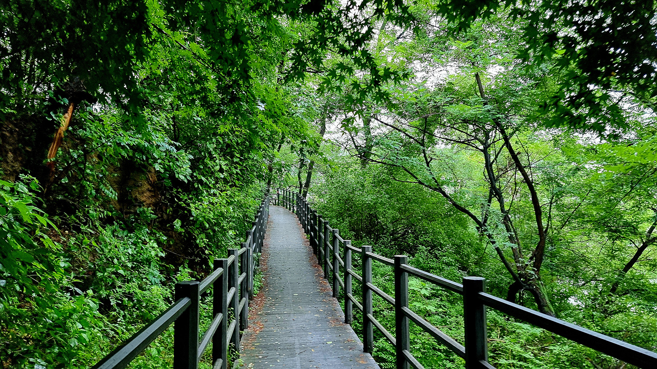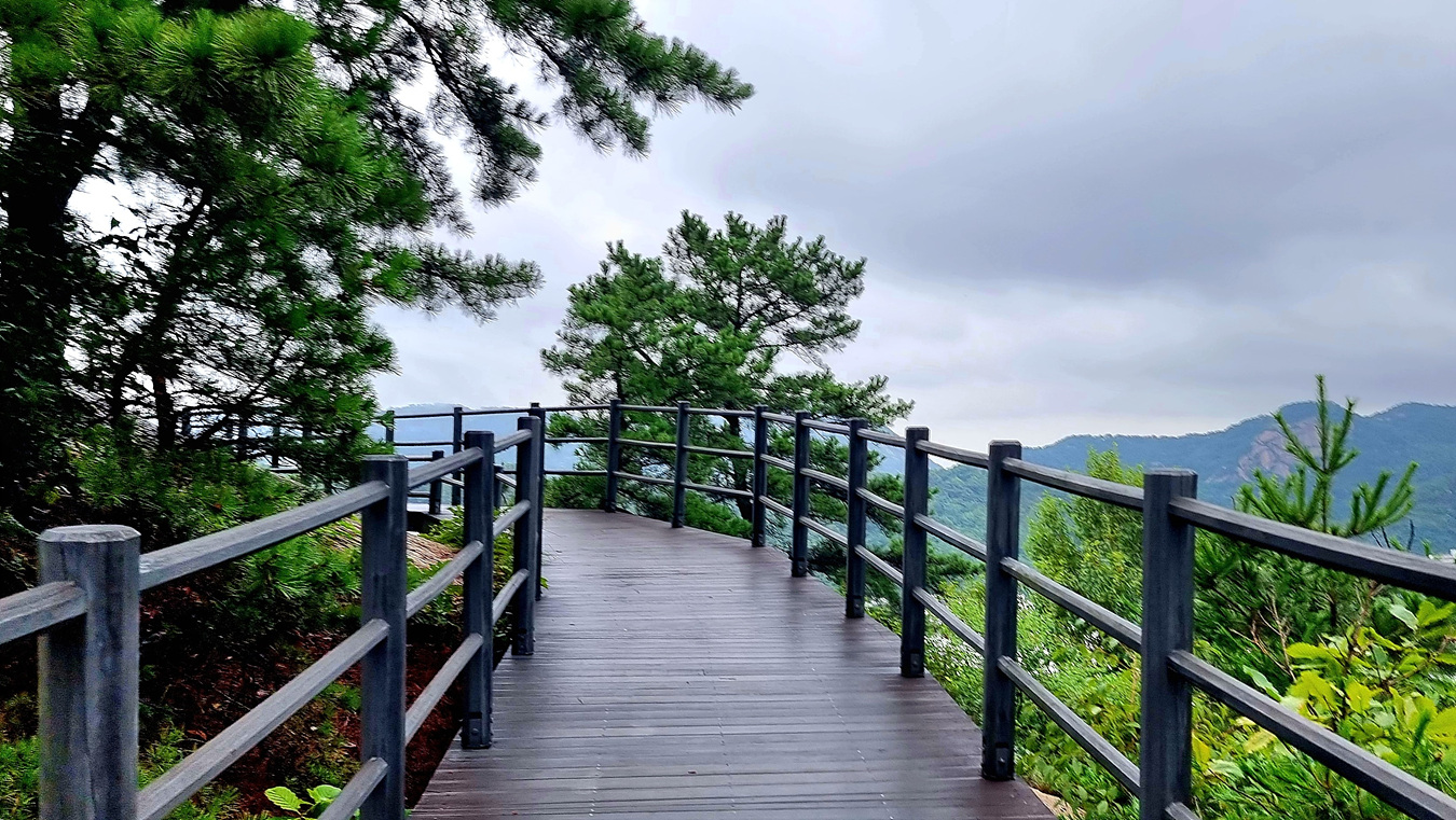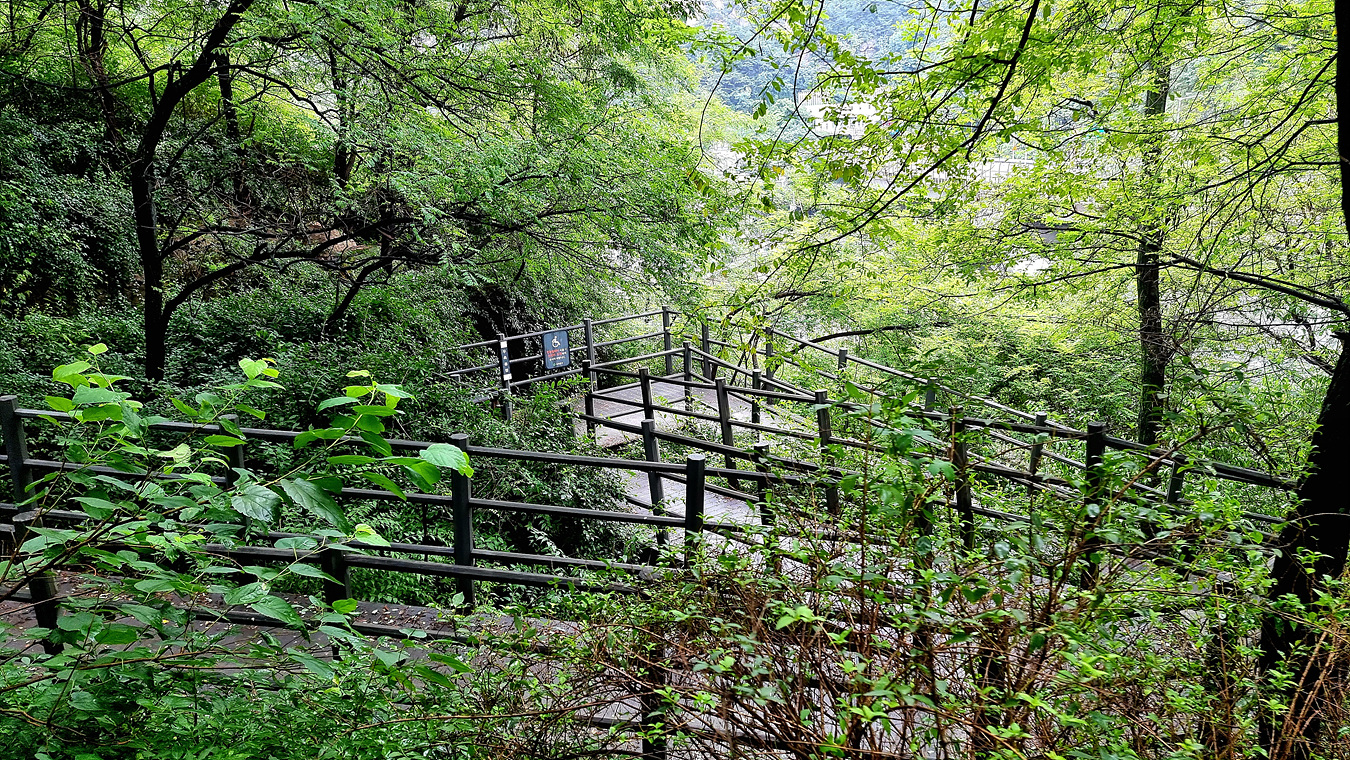 장마기간이라 어딜가나 비를 맞을 수 밖에 없어 안전한 길을 찾아 온 데크길,
