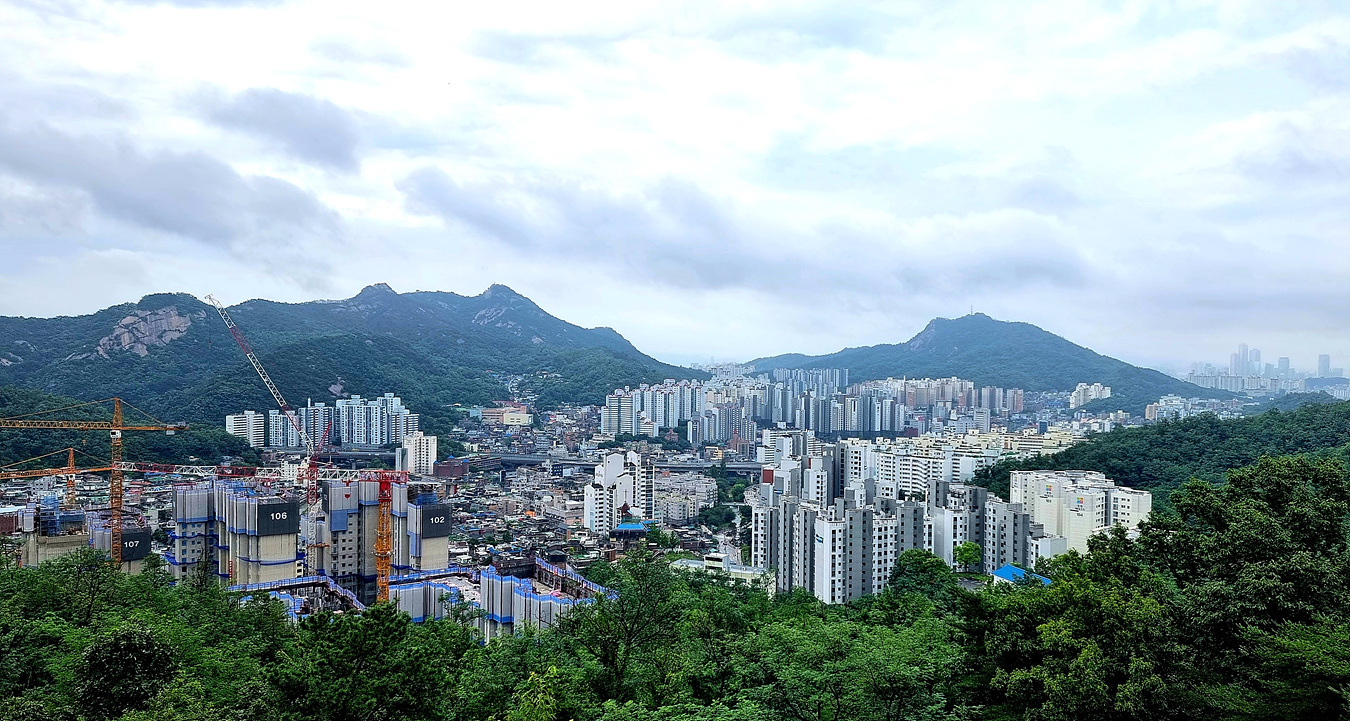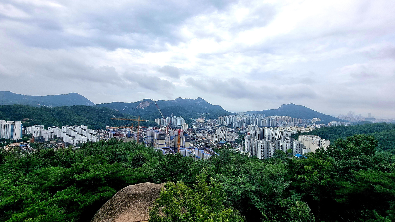 다시 아래로 내려 와 바라보는 주변 전경은 왼쪽부터 북악산과 인왕산, 그리고 서대문 안산까지가 너울져 내리고