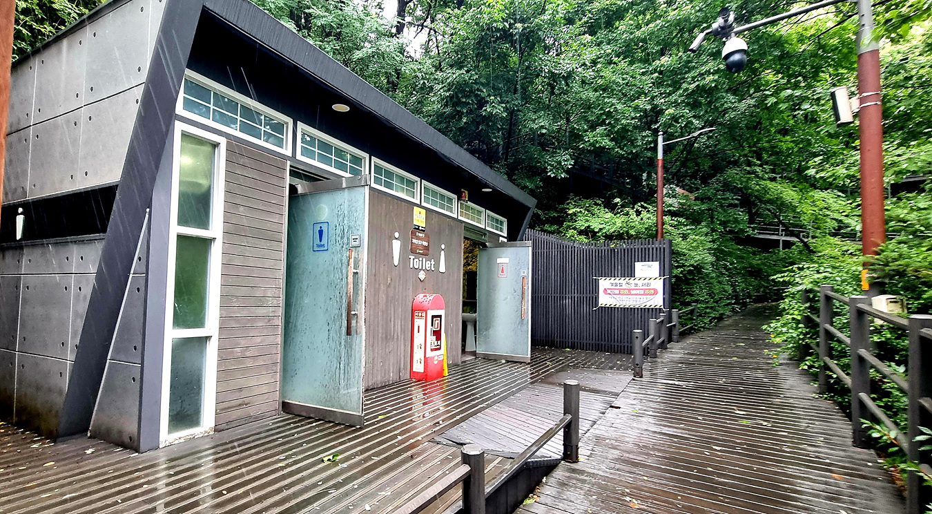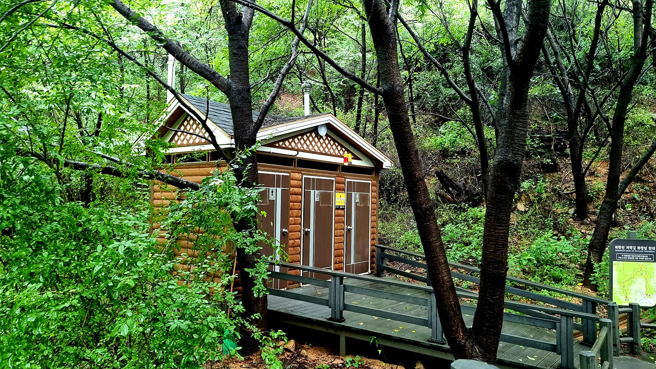 그리고 자락길 3번째 화장실이 있다, 산중 화장실은 어떻게 만들어 졋을까? 궁금해서 열어보니 물이 없어니 수세식은 아니고 자연발화식인 모양으로 냄새 정도는 참아야 하는 그런 화장실이다,