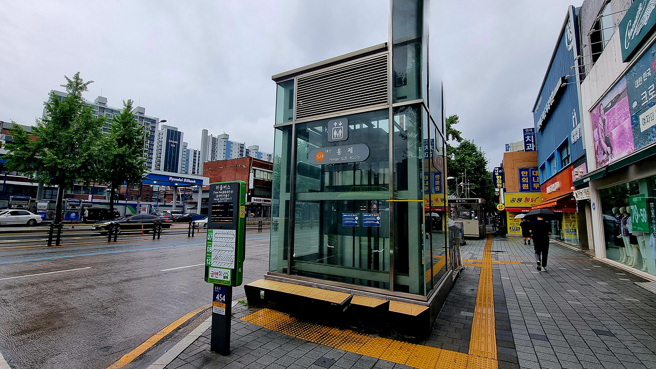 홍제역 1번 출구로 나가 U턴을 하면 엘리베이터 뒤에 마을버스 정류장이 있다, 여기서 12번 마을버스로 좁은 언덕 골목길을 10여분 정도 가다가 팔각정 버스정류장에서 내려서