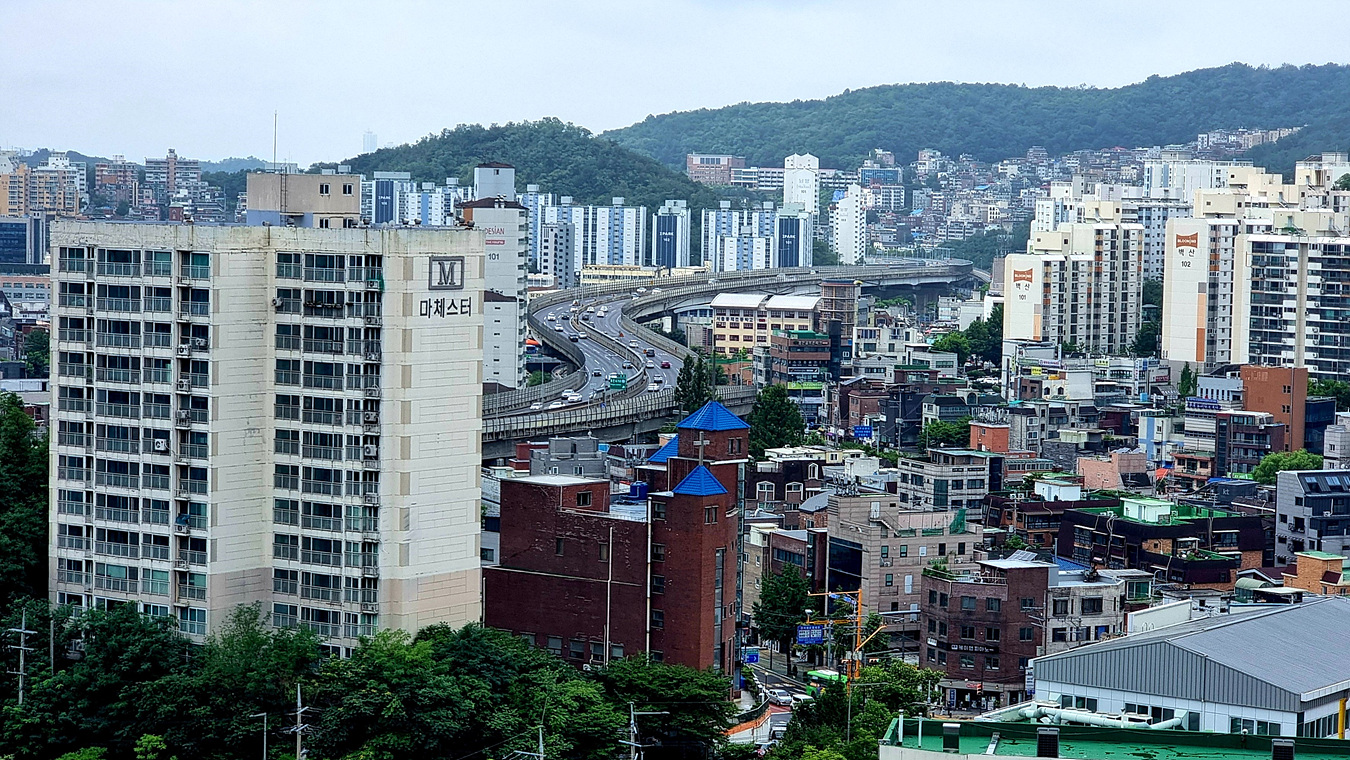 아파트들 사이로 내부순환도로가 지나가는 곳