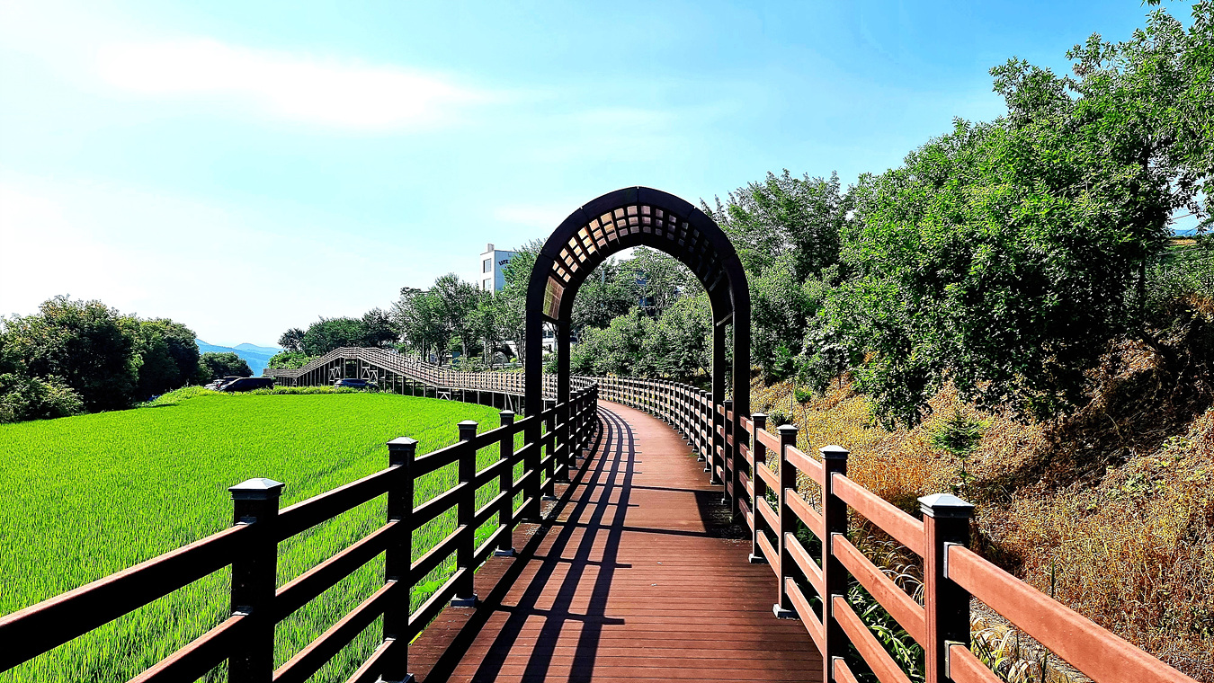 도로와 호수옆으로 나란히 함께가는 데크길에는 아치형으로 문을 만들어서 멋스럽게 꾸며놓기도했다,