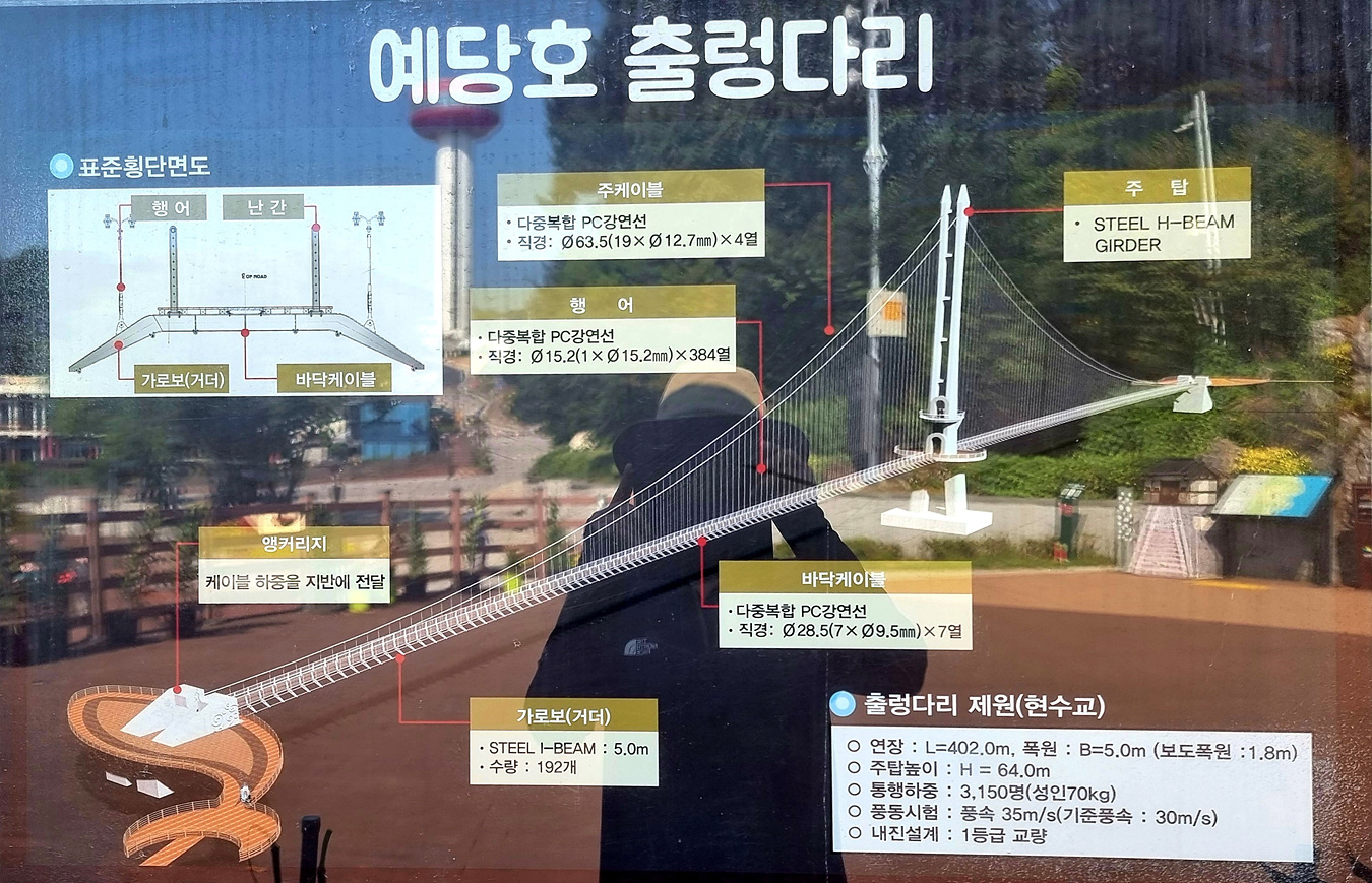 예당호 출렁다리는 길이 402m 다리로 성인 70kg 3,150명이 도시에 건널 수 있게 내진설계 1등급으로 건설된 출렁다리지만 걸어보면 출렁임이 별로없는 튼튼한 다리다, 출렁다리는 지난번에 건너갔다 왔으니