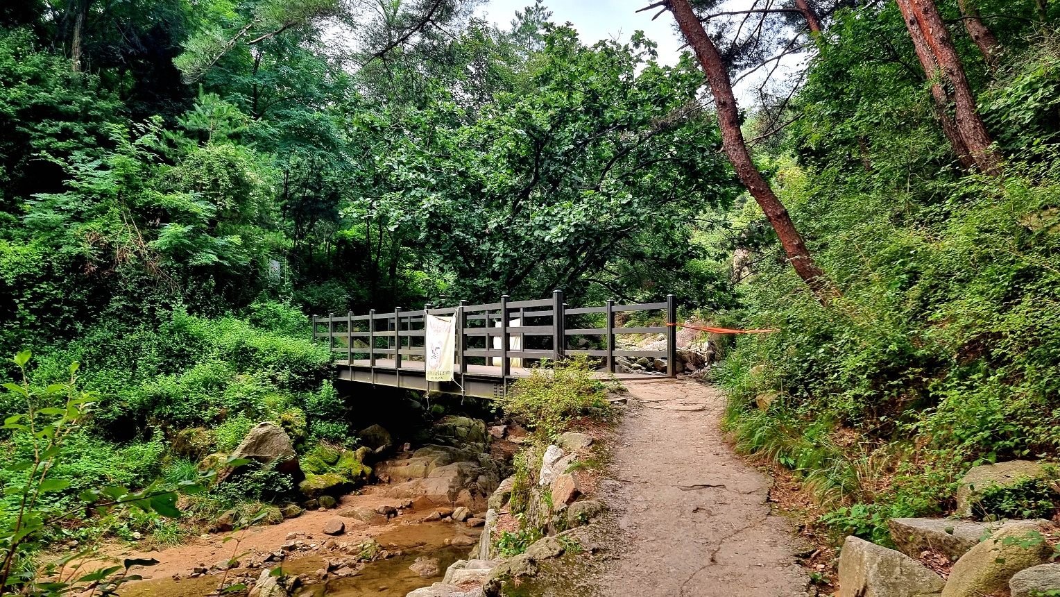 다리 건너 10여m쯤에서 왼쪽 계곡으로 내려가면