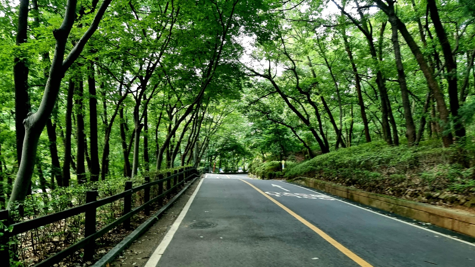 공원관리도로 로 이어지는 길을 계속해서 올라가다보면 갈림길이 있는데 여기서는 왼쪽 호수공원으로 들어간다,